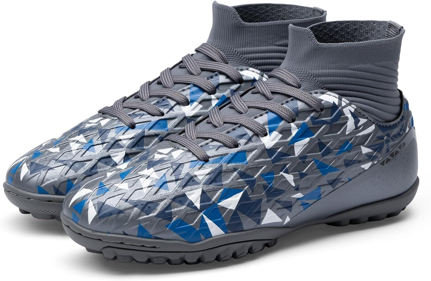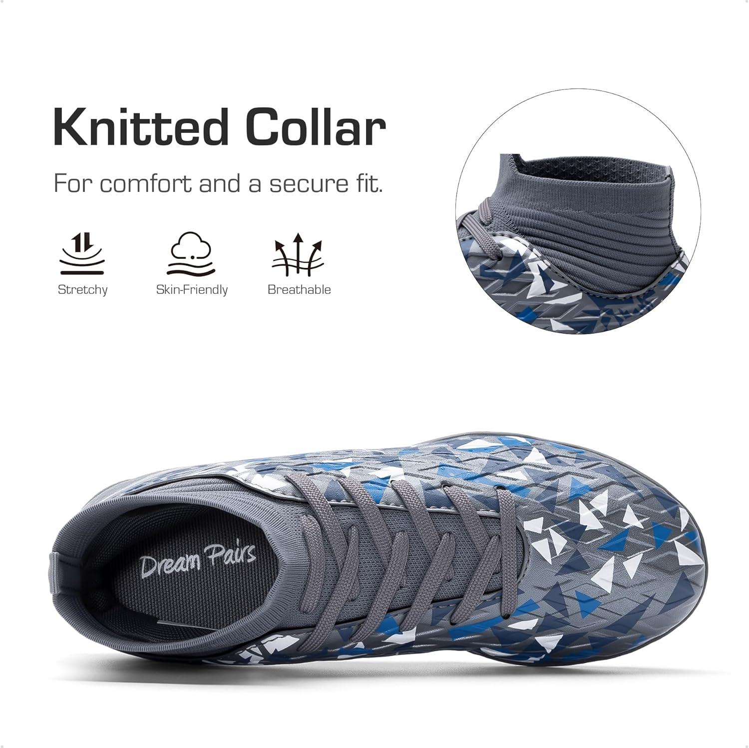DREAM PAIRS Boys Girls Indoor Soccer Shoes High Top Football Turf Futsal Shoes for Little/Big Kid(Grey)
