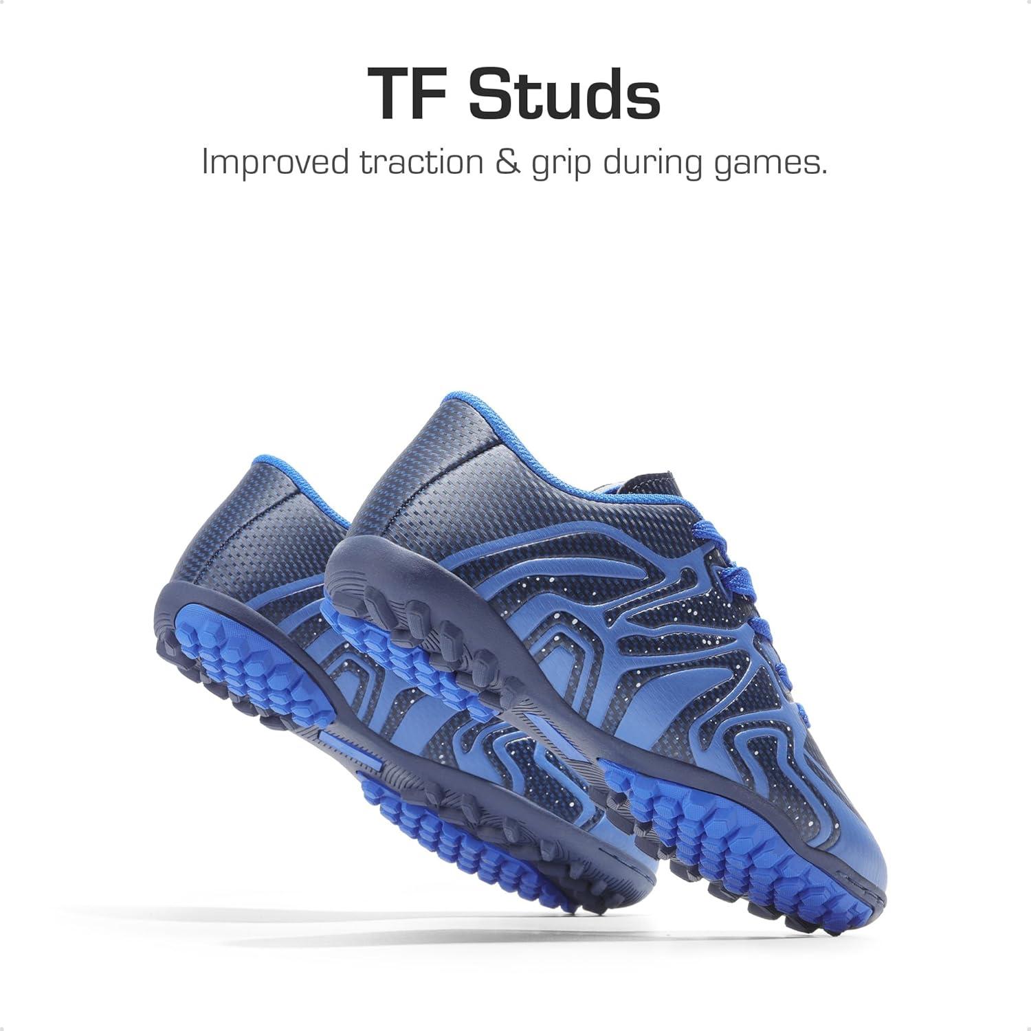 DREAM PAIRS Boys Girls Indoor Turf Soccer Cleats Lace Up Athletic Youth Futsal Football Shoes for Little/Big Kid(Navy/Royal/White)