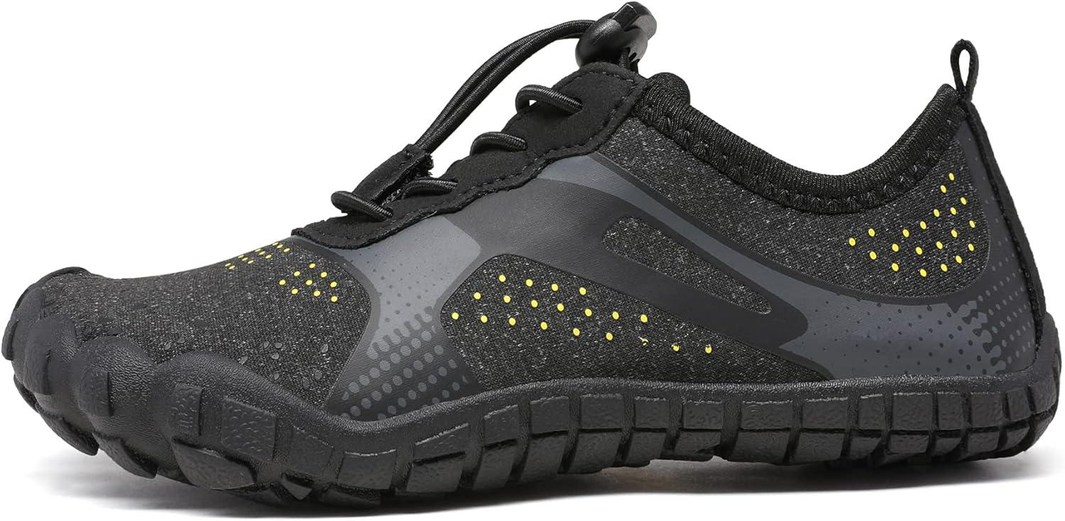 NORTIV 8 Kids Water Shoes, Lightweight Quick Dry Barefoot Athletic Aqua Sports Shoes for Boys & Girls, Outdoor, Summer(Black/Dark/Grey)