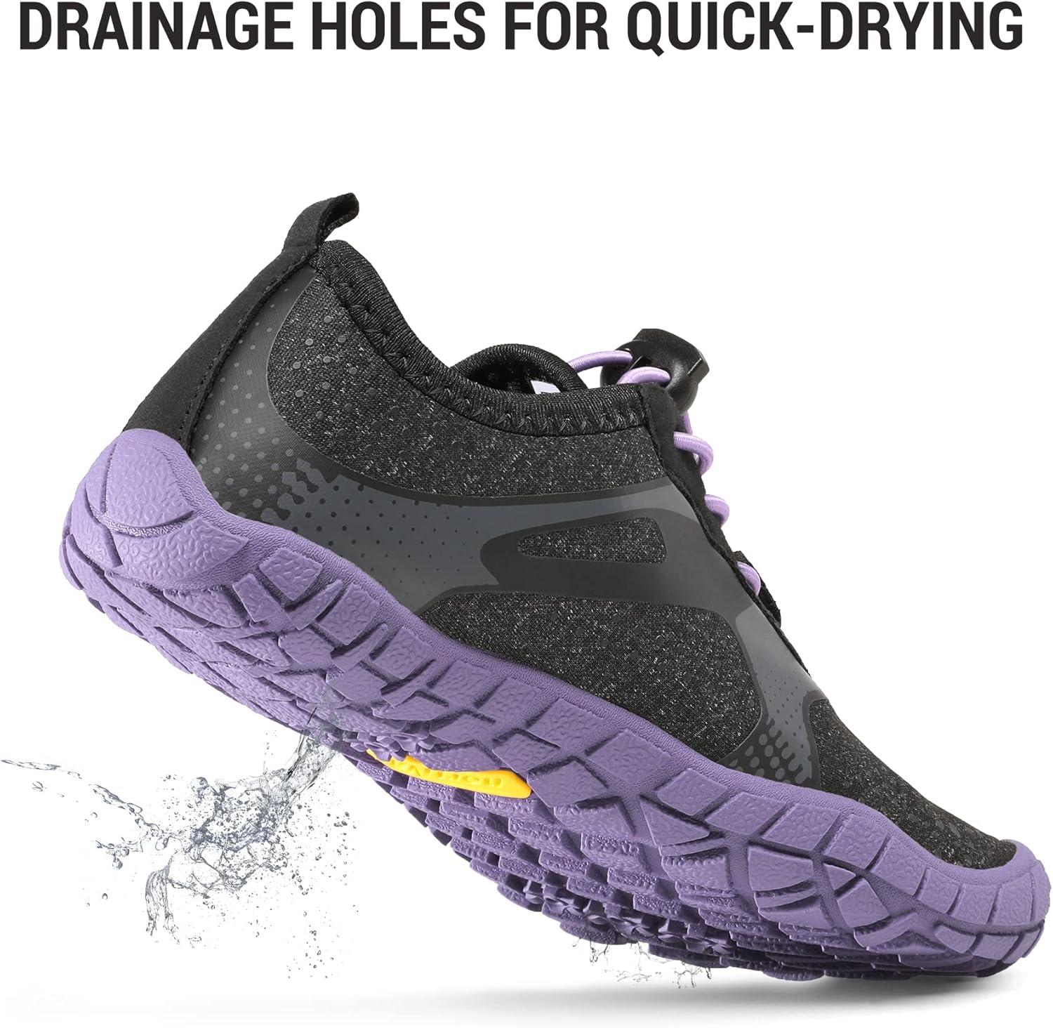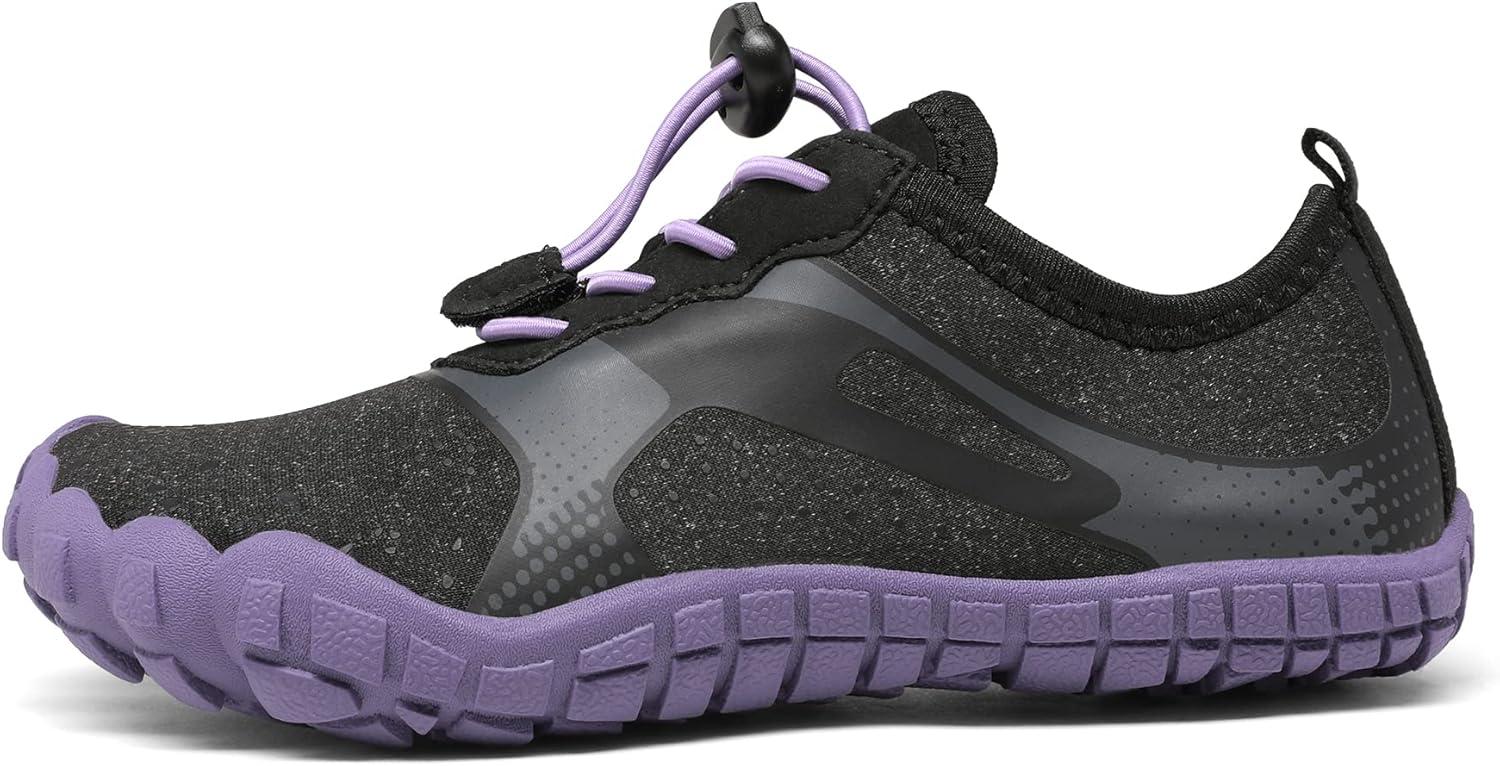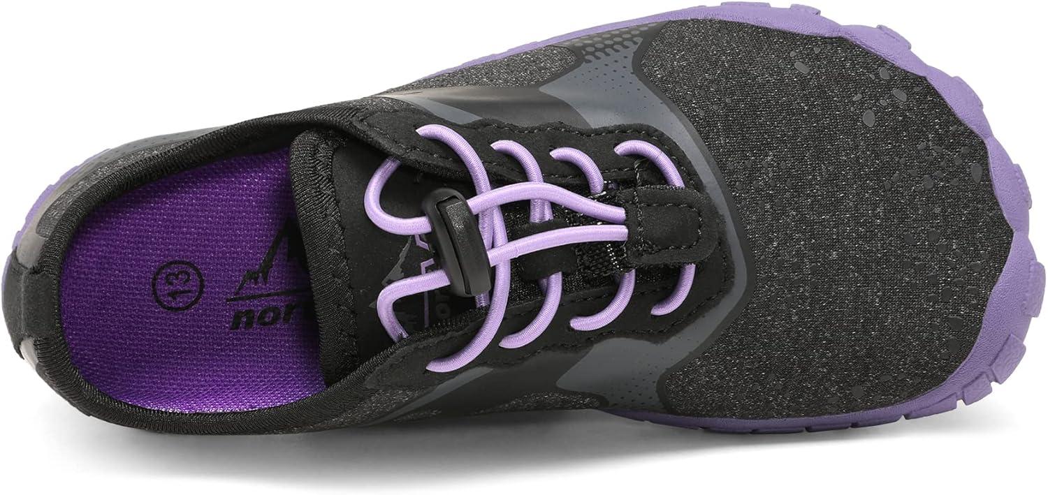 NORTIV 8 Kids Water Shoes, Lightweight Quick Dry Barefoot Athletic Aqua Sports Shoes for Boys & Girls, Outdoor, Summer(Black/Grey/Purple)