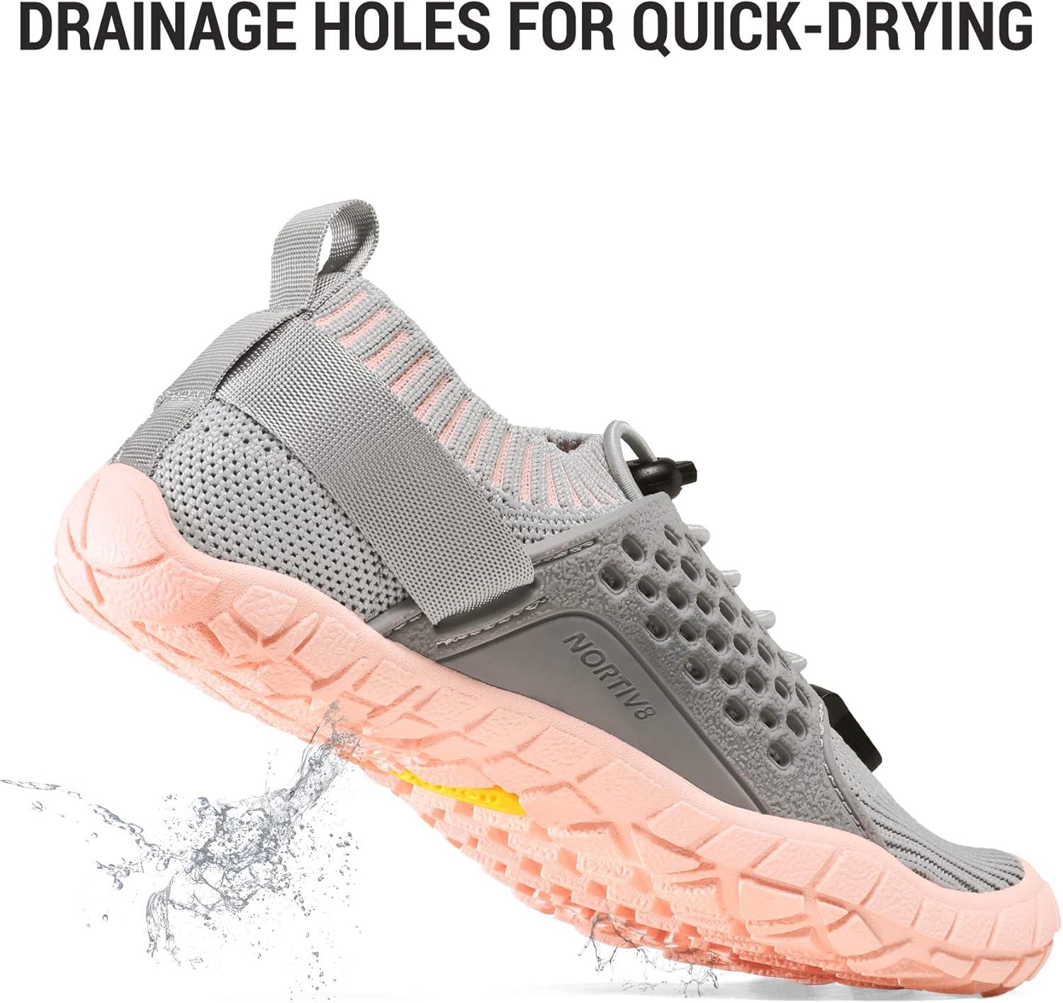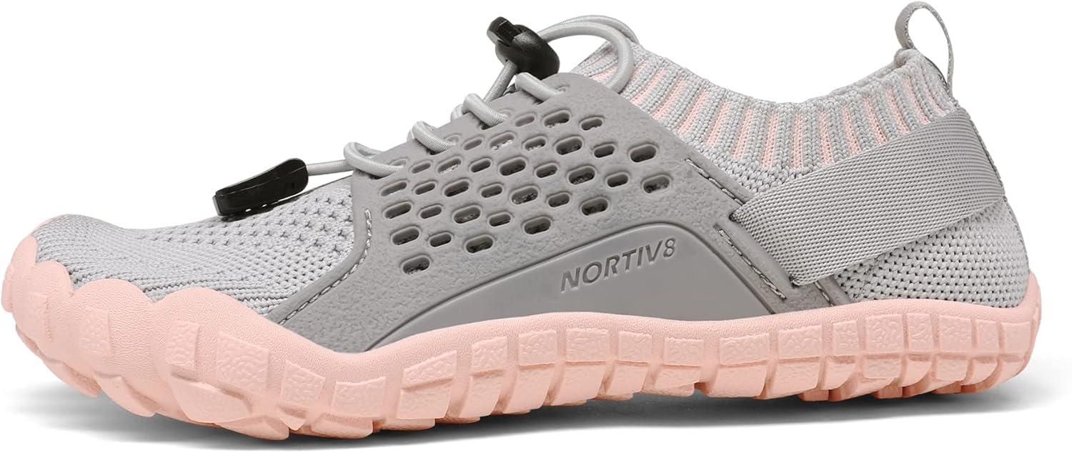 NORTIV 8 Kids Water Shoes, Lightweight Quick Dry Barefoot Athletic Aqua Sports Shoes for Boys & Girls, Outdoor, Summer(Light/Grey/Pink)