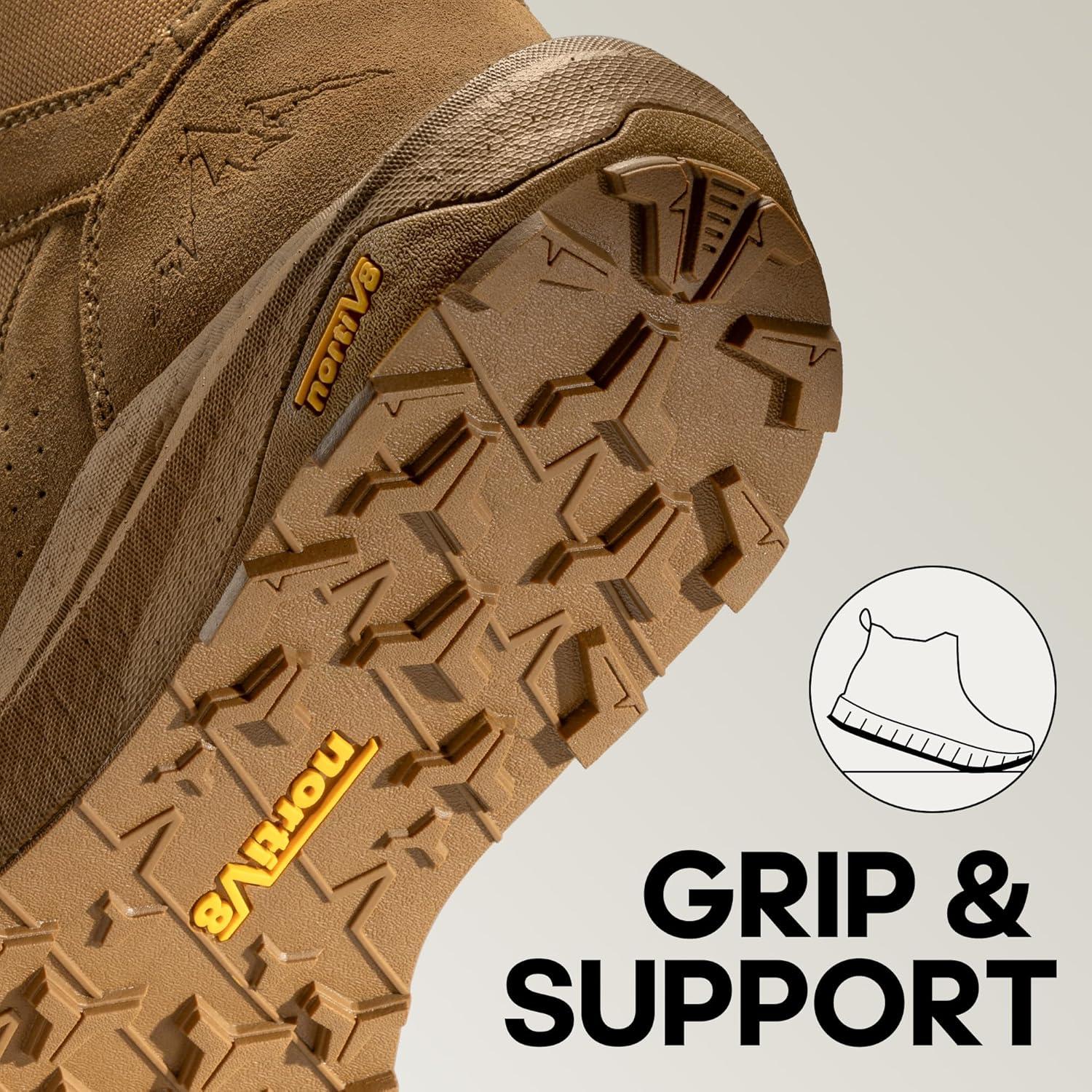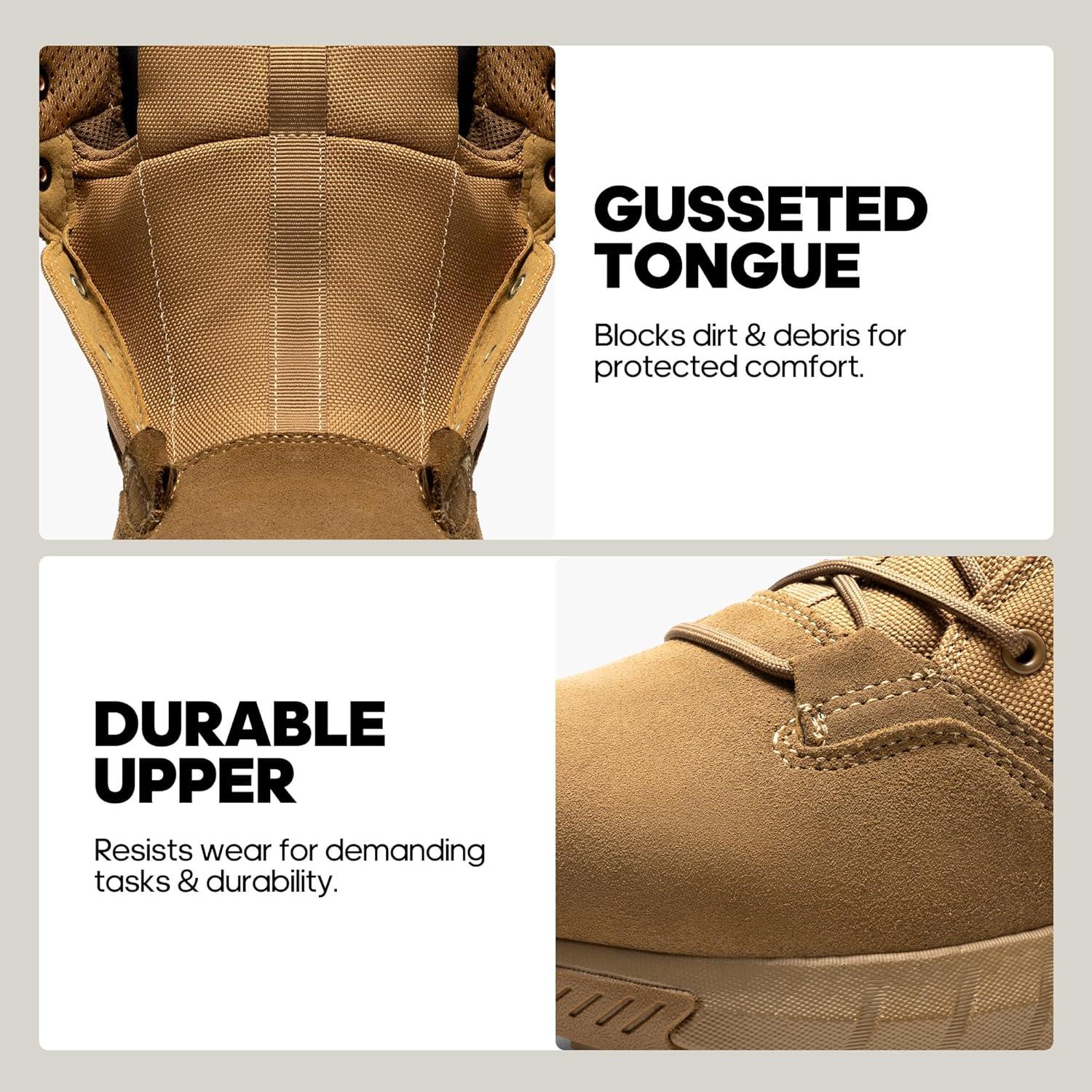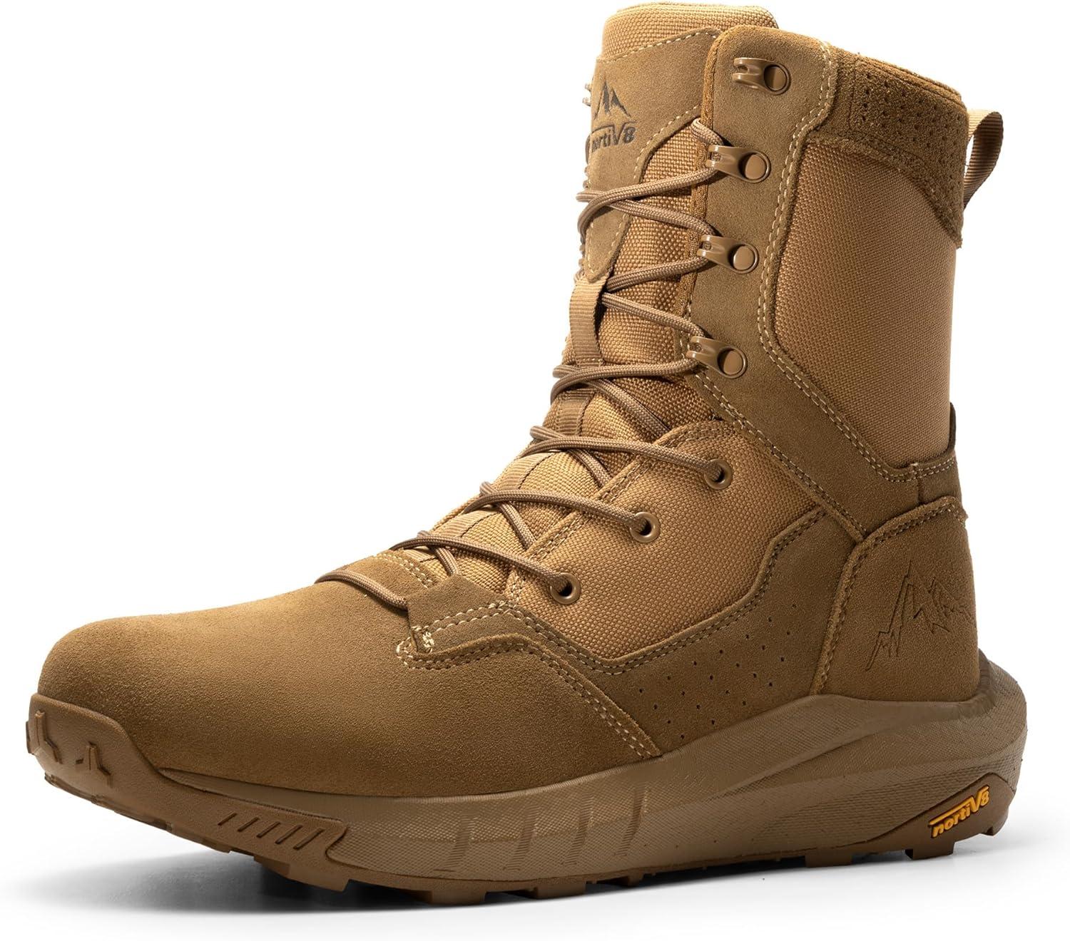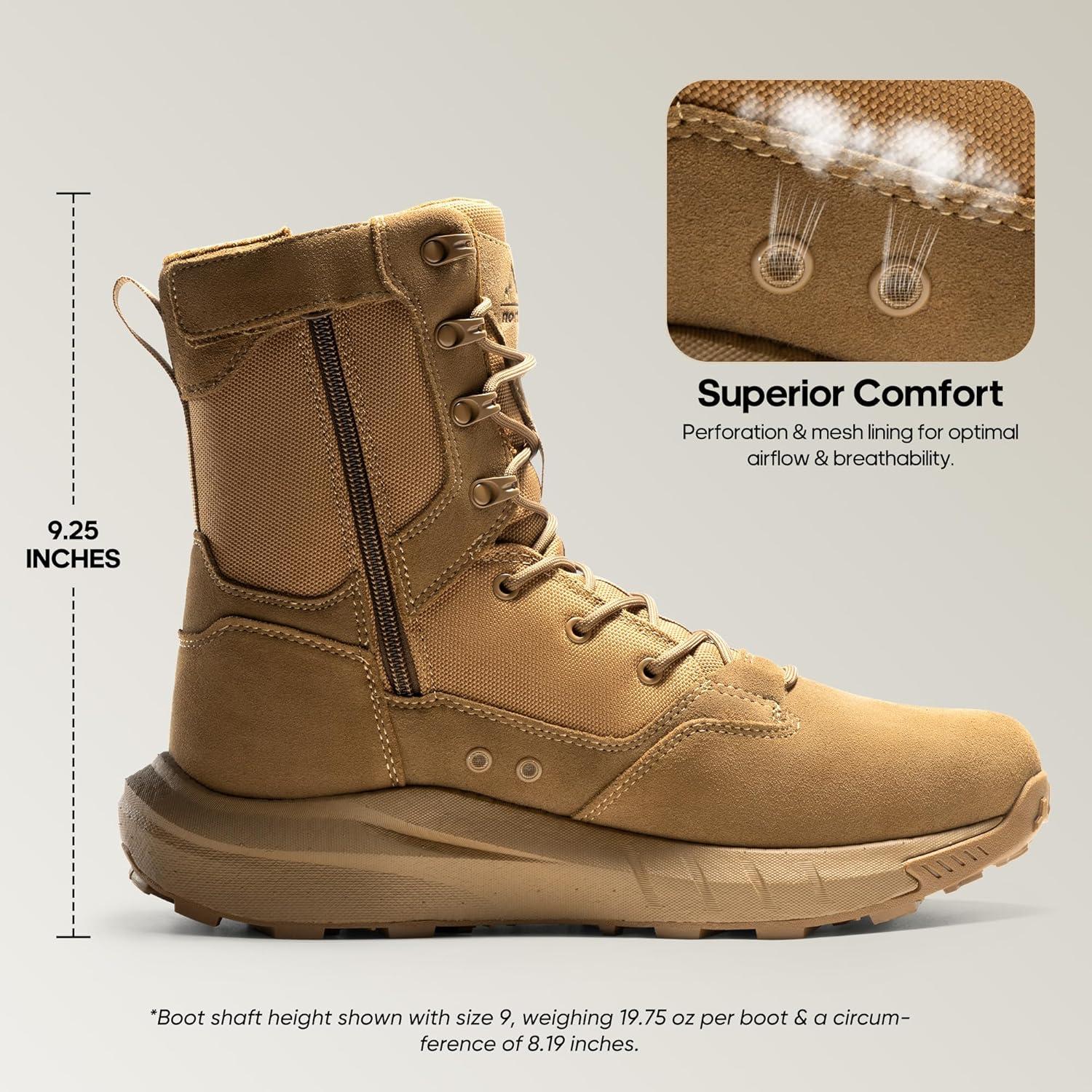 NORTIV 8 Men’s Breathable Military Tactical Combat Boots Side Zipper Arch Support Leather Lightweight Motorcycle Work Hiking Boots 8 Inches DesertStorm(Coyote)