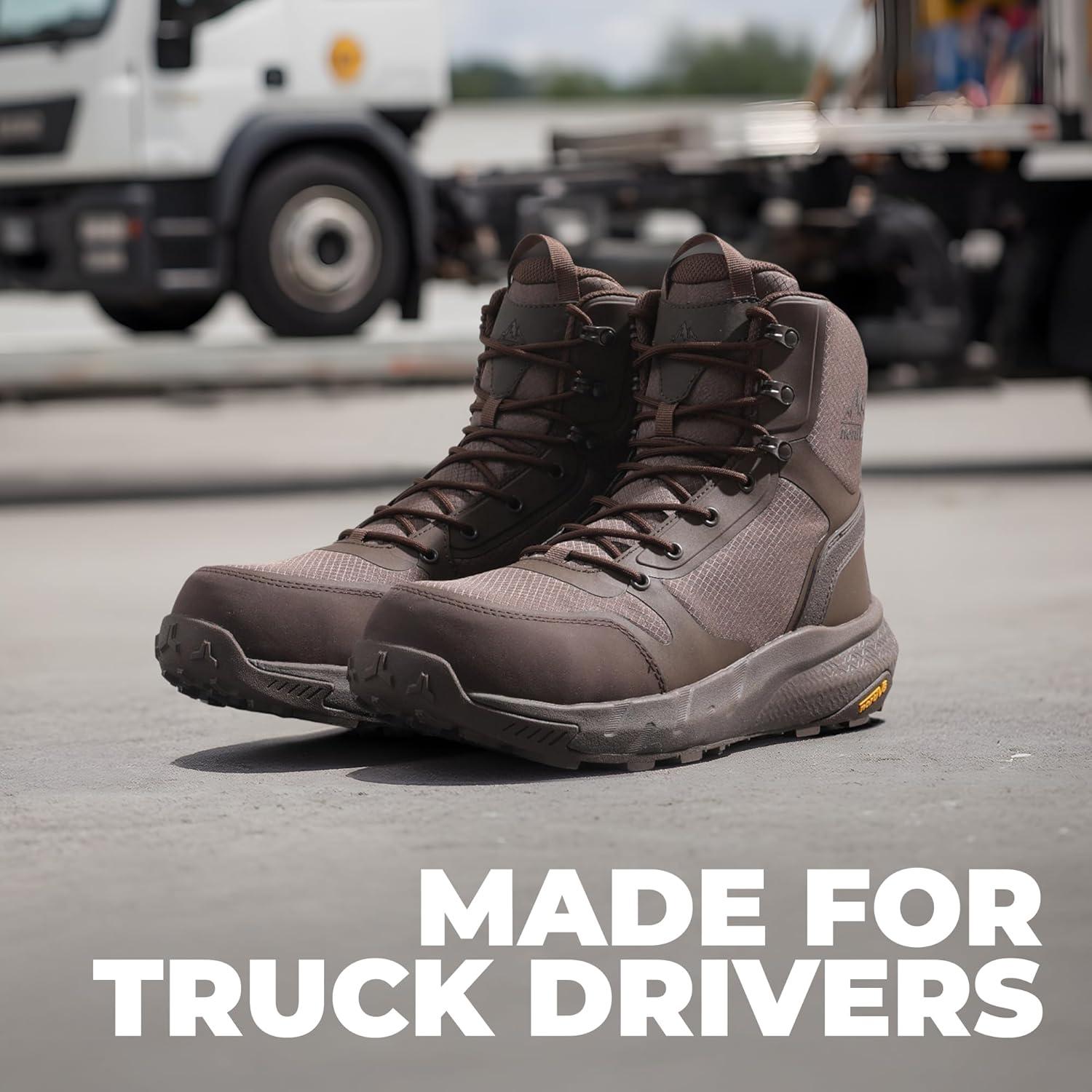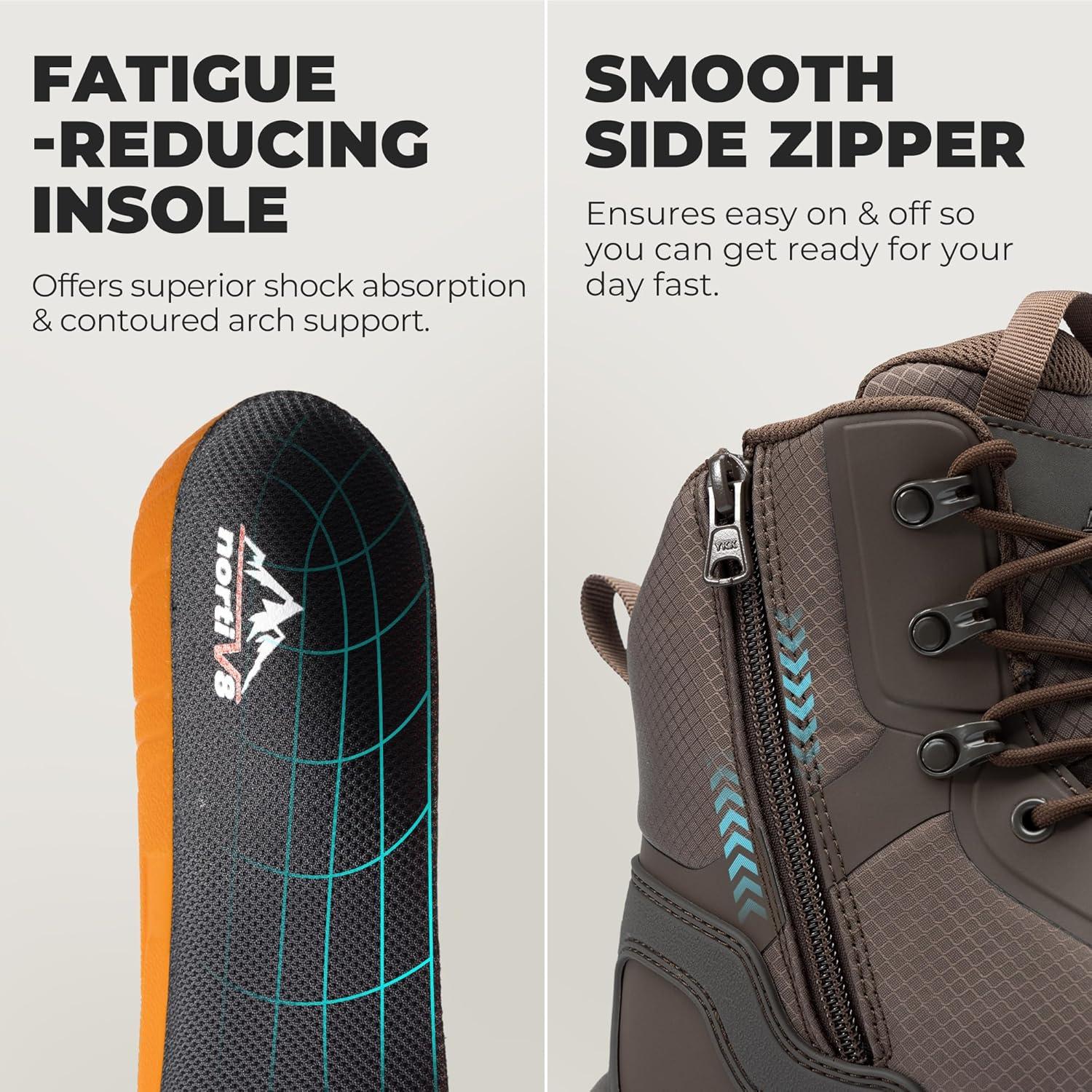 NORTIV 8 Men’s Composite Toe Work Boots – 8” Lightweight Comfortable ASTM F2412-24 & ASTM F2913-24 Safety Boots with Side Zipper for Construction & Warehouse, Metrostrike-Nano(Brown)
