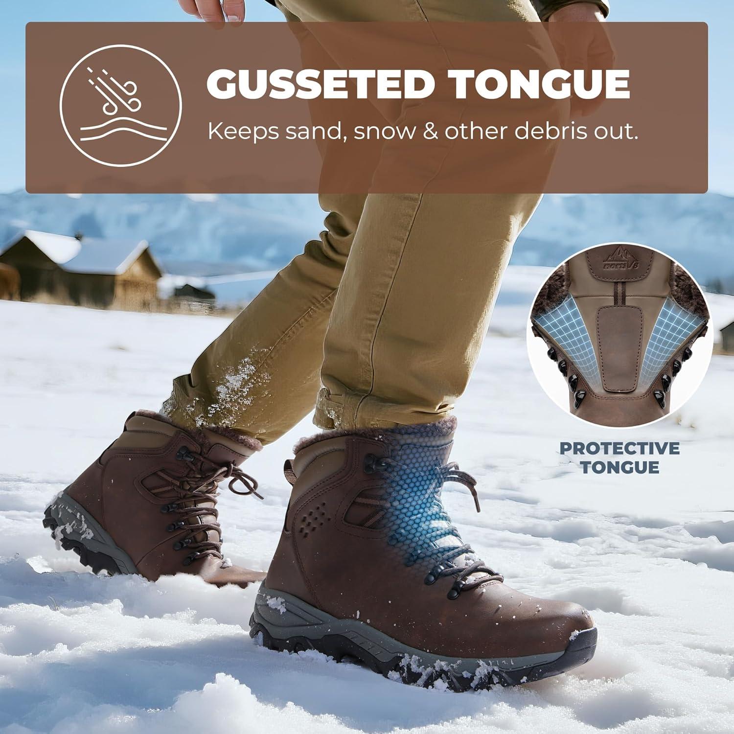 NORTIV 8 Mens Hiking Winter Snow Insulated Waterproof Outdoor Boots(All Browm)