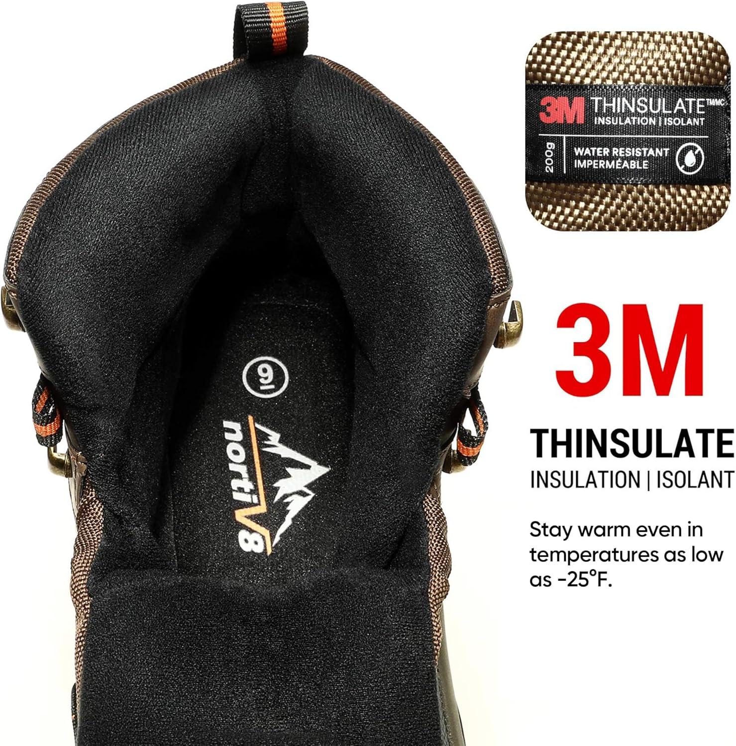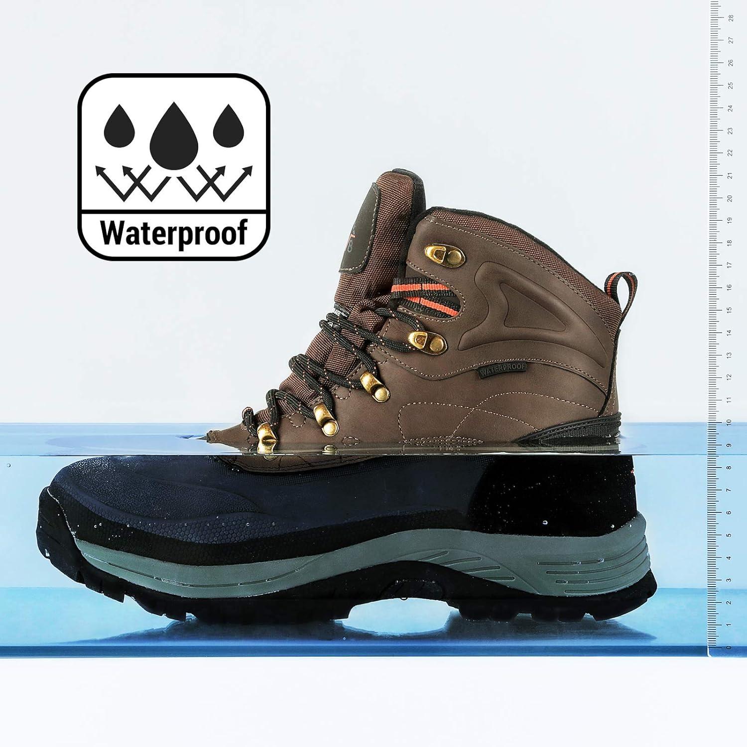 NORTIV 8 Men’s Insulated Waterproof Construction Hiking Winter Snow Boots(Brown/Black)