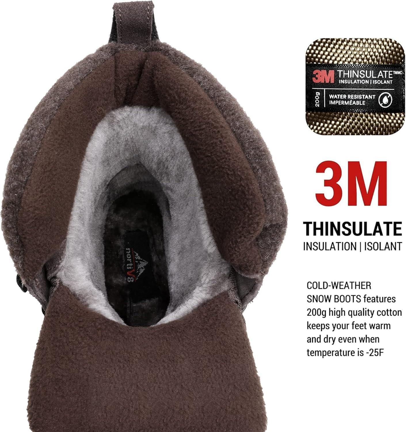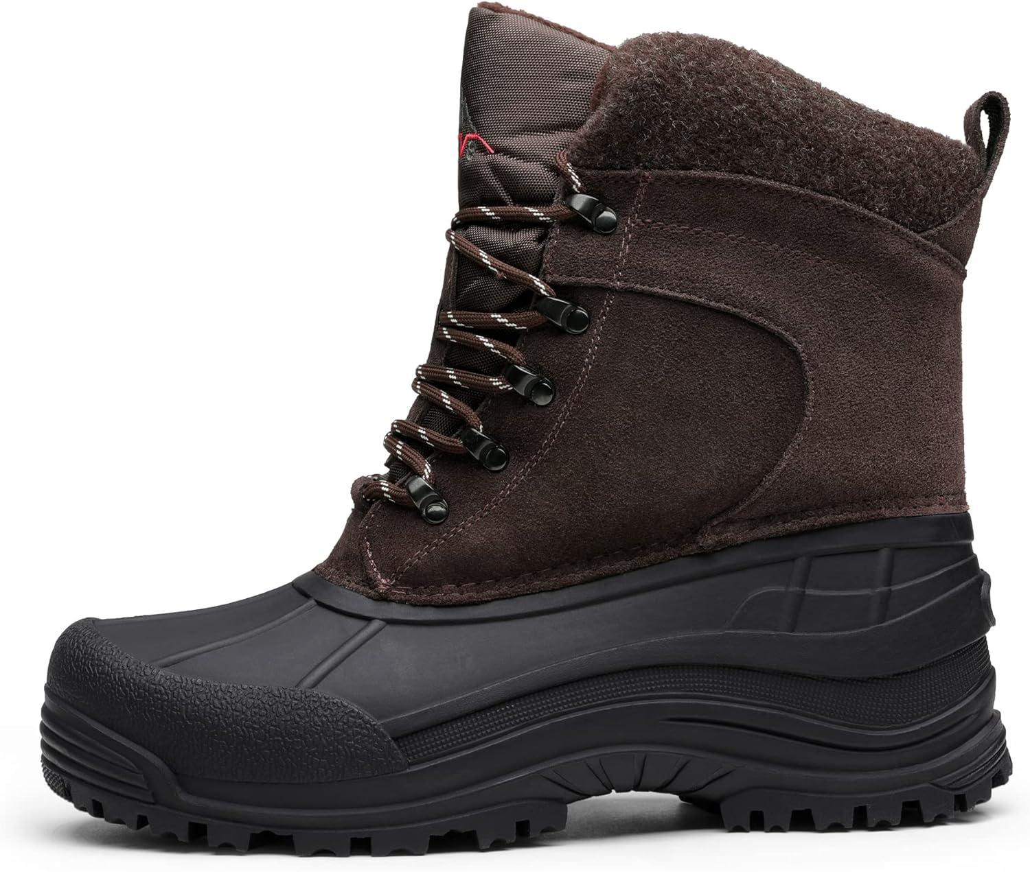 NORTIV 8 Men’s Insulated Waterproof Winter Snow Boots TERREY(Brown)