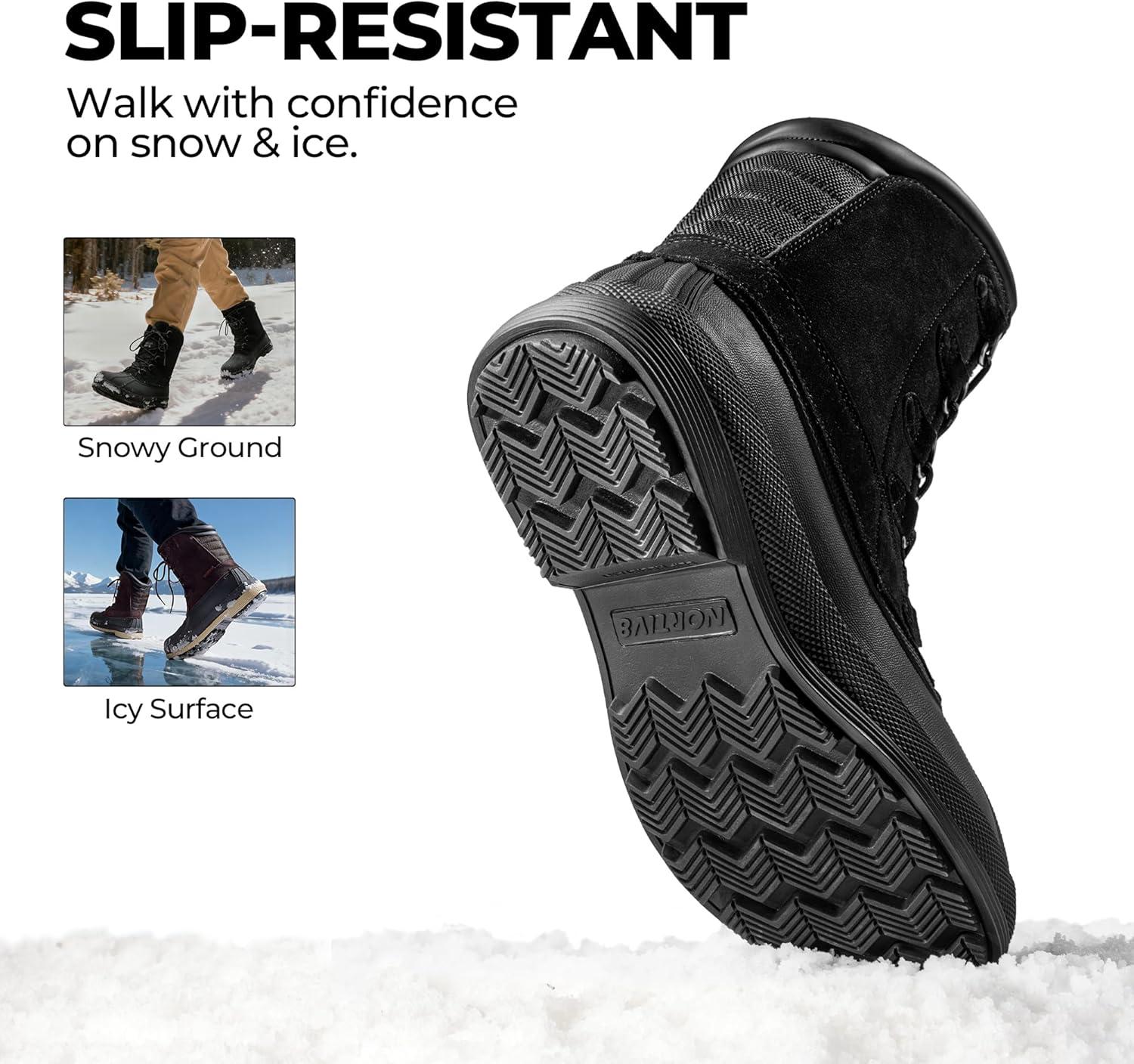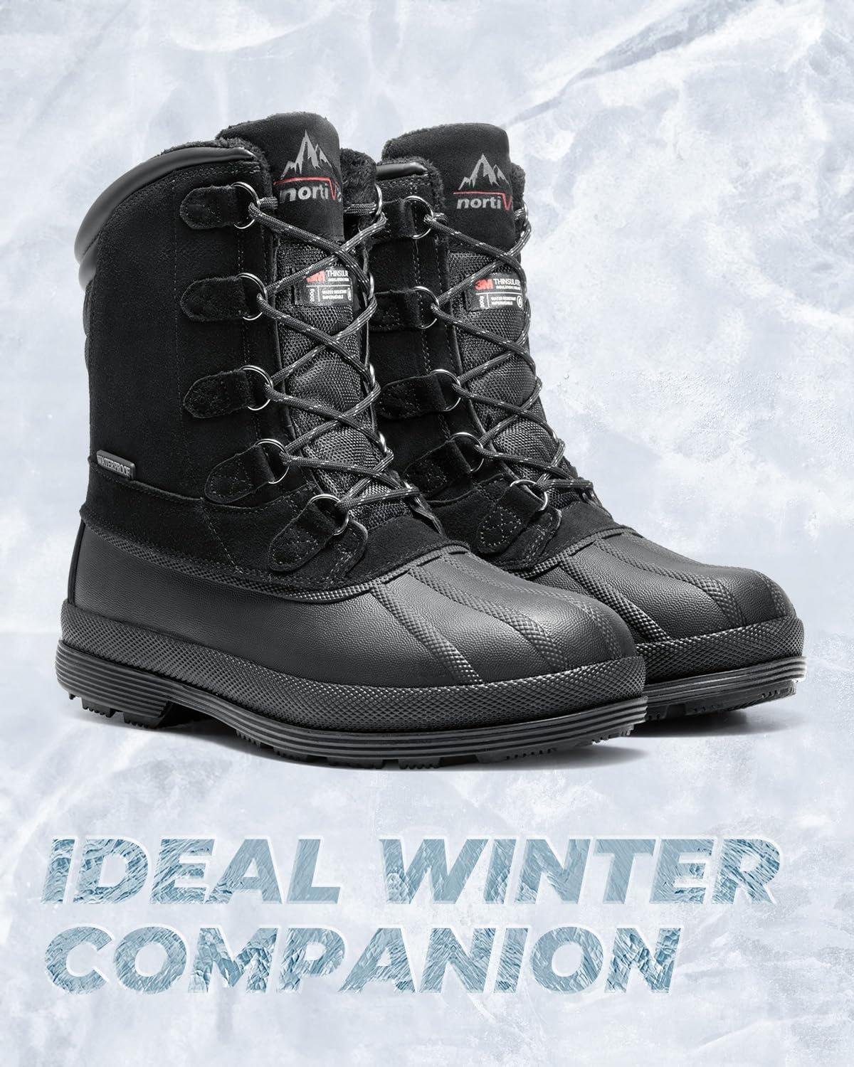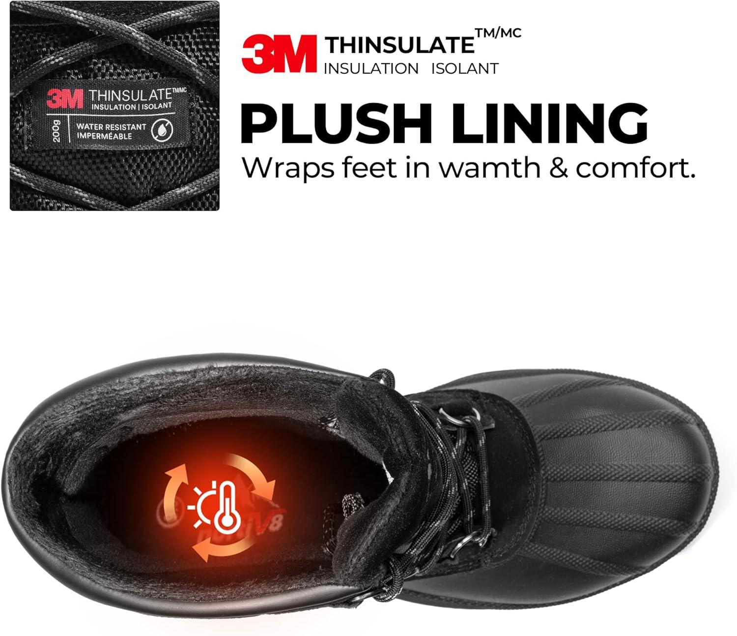NORTIV 8 Men’s Insulated Waterproof Work Winter Snow Boots(Black)