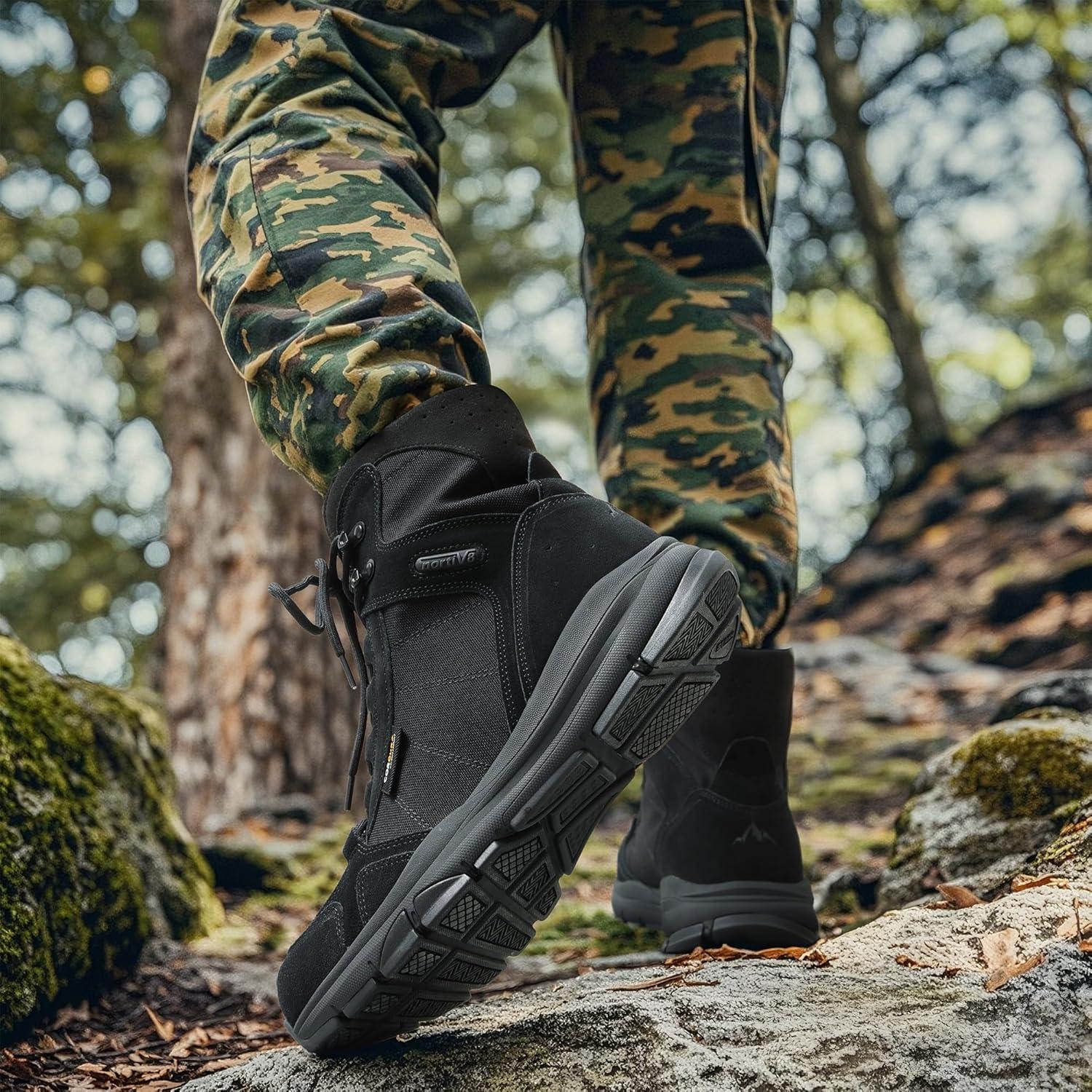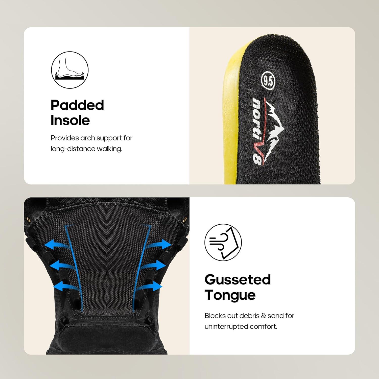 NORTIV 8 Men’s Lightweight Military Tactical Work Boots Outdoor Hiking Motorcycle Combat Boots(All Black)