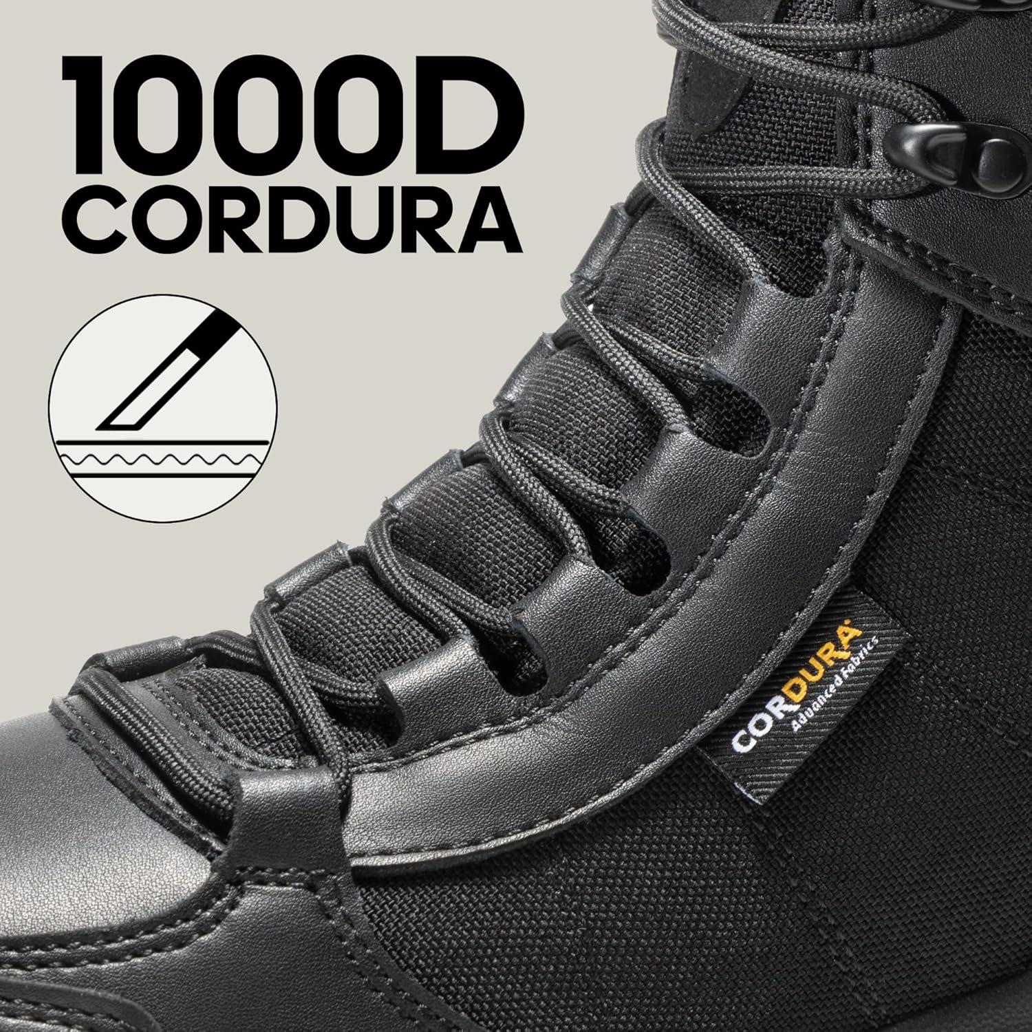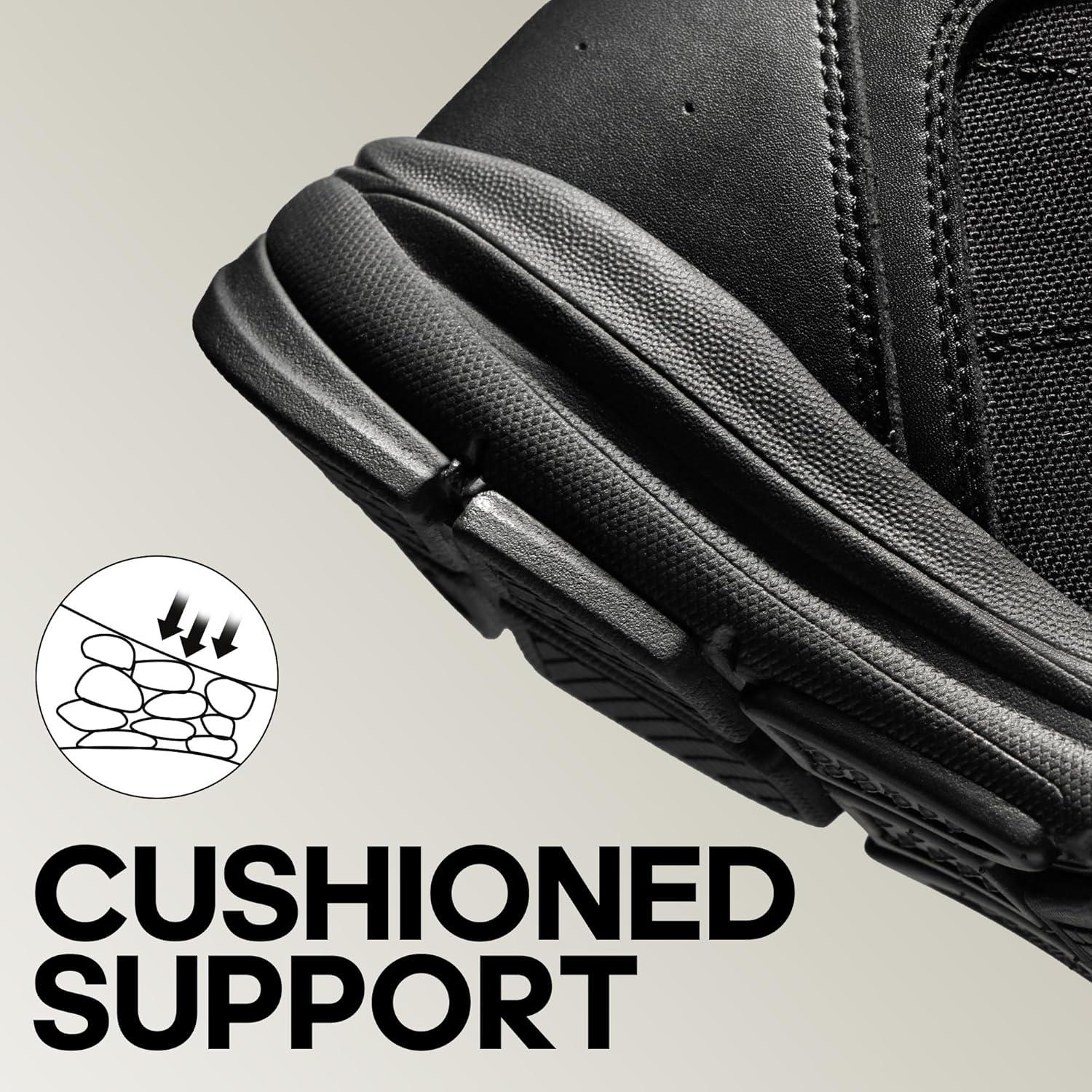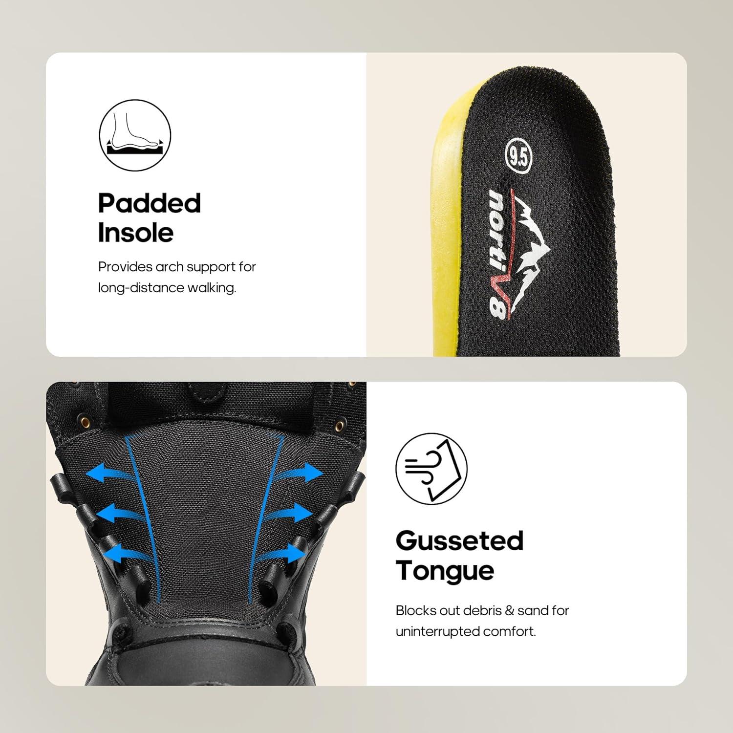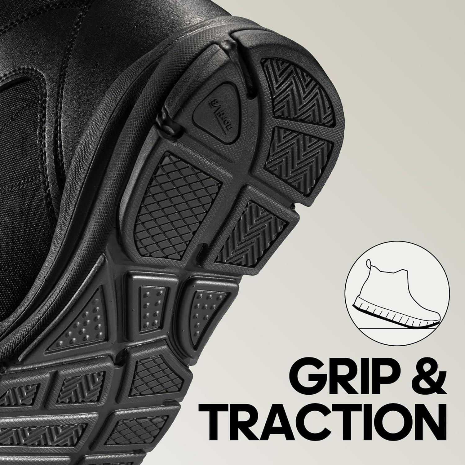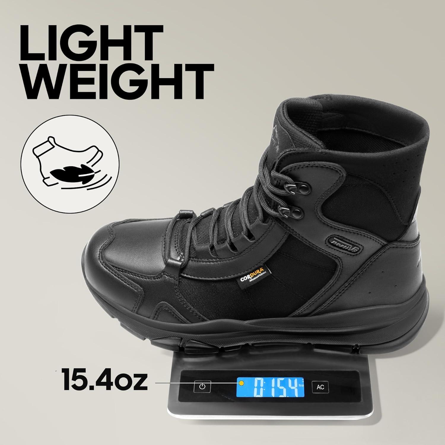 NORTIV 8 Men’s Lightweight Military Tactical Work Boots Outdoor Hiking Motorcycle Combat Boots(Black-leather)