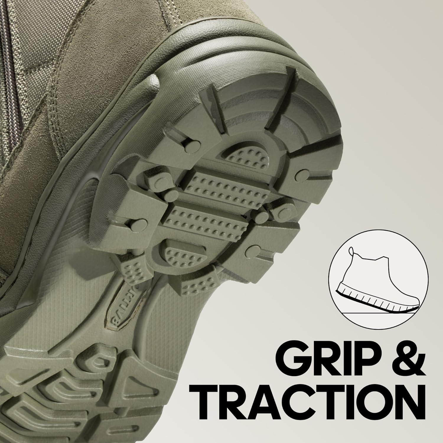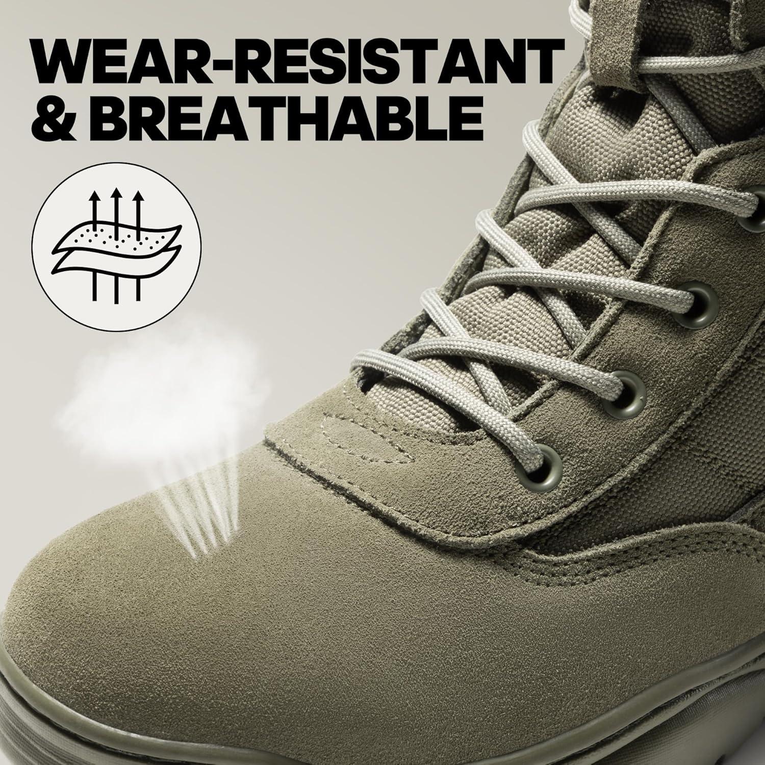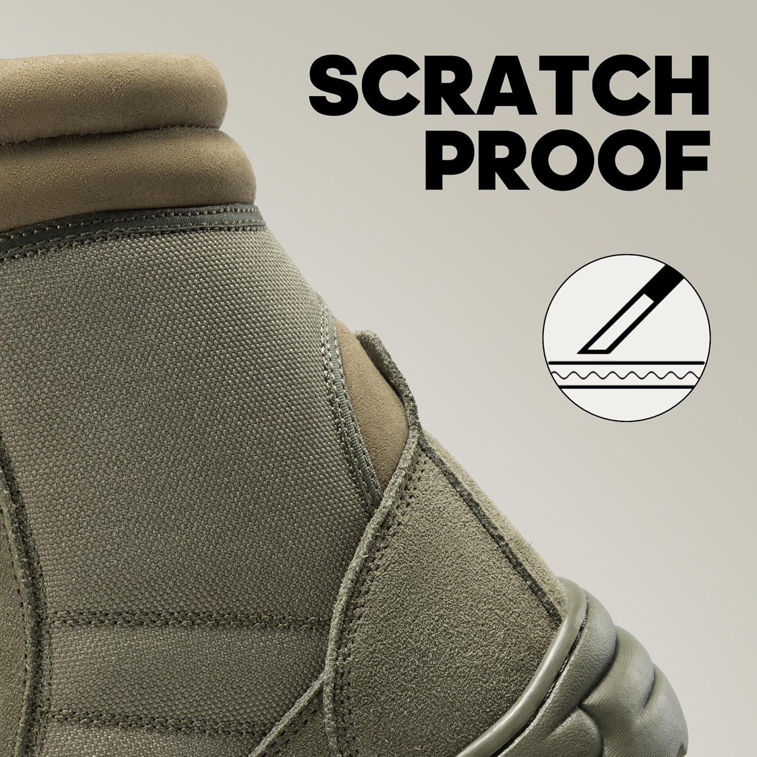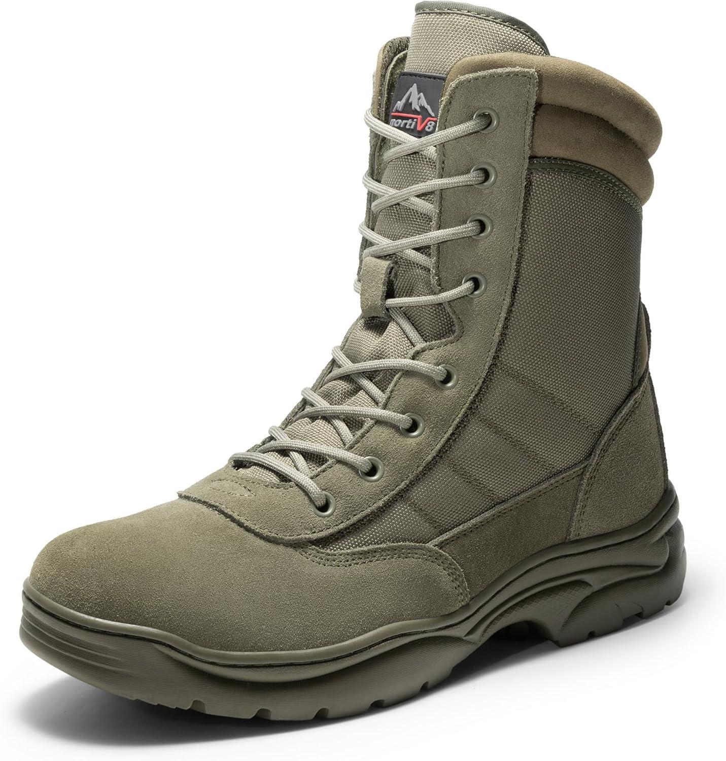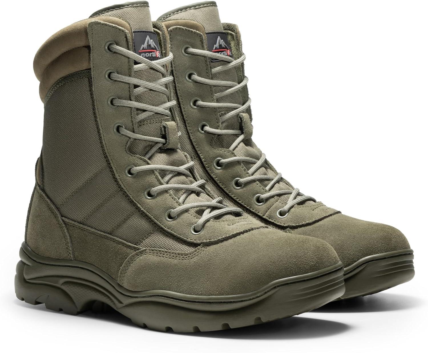 NORTIV 8 Men’s Military Tactical Work Boots Side Zipper Leather Motorcycle Combat Boots Trooper(6-8 Inches)(Army Green)