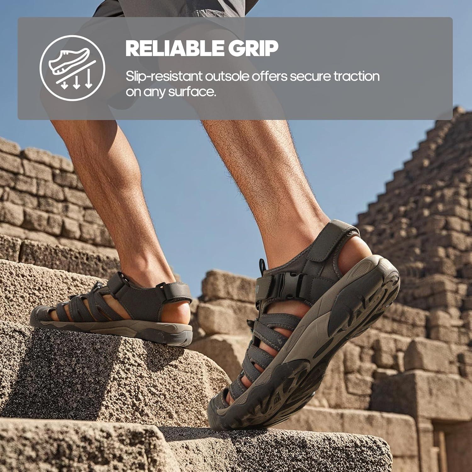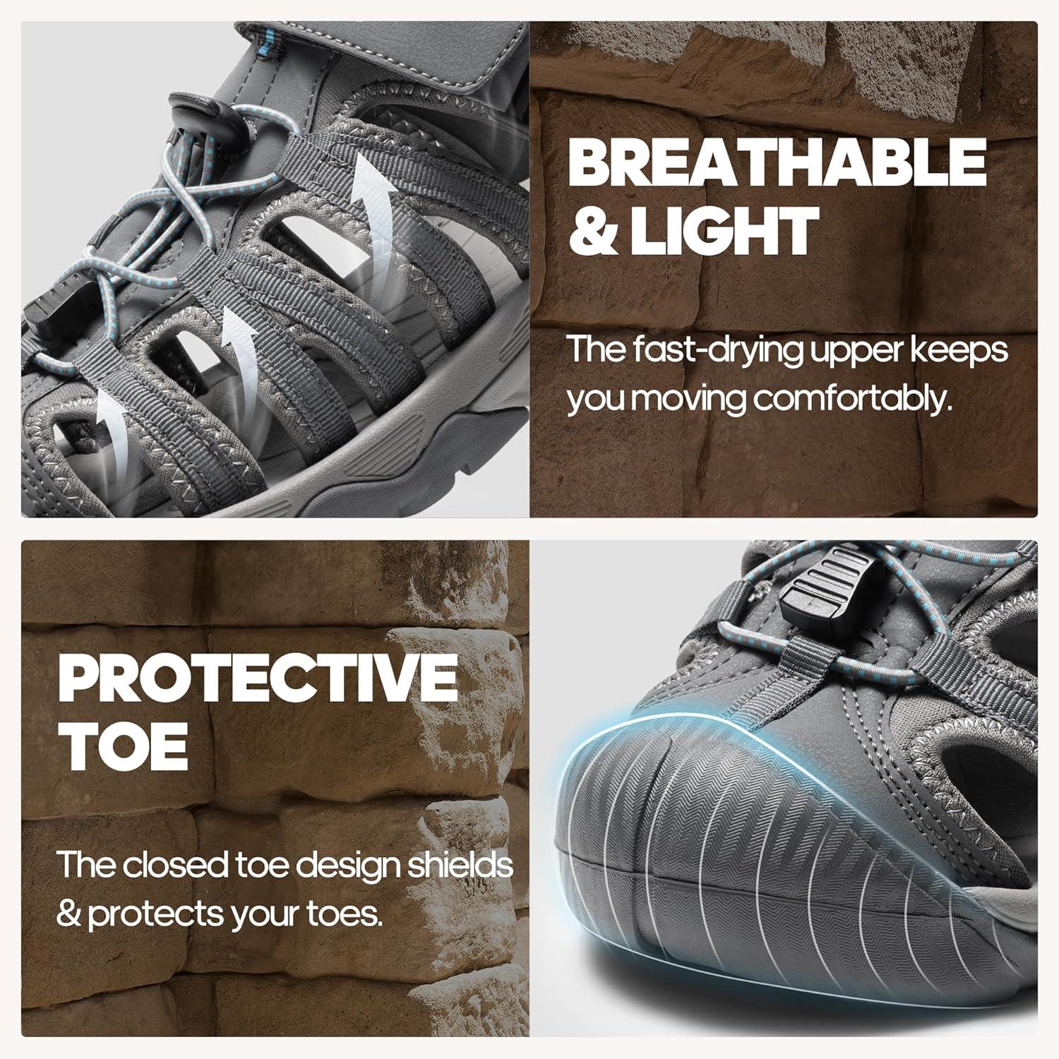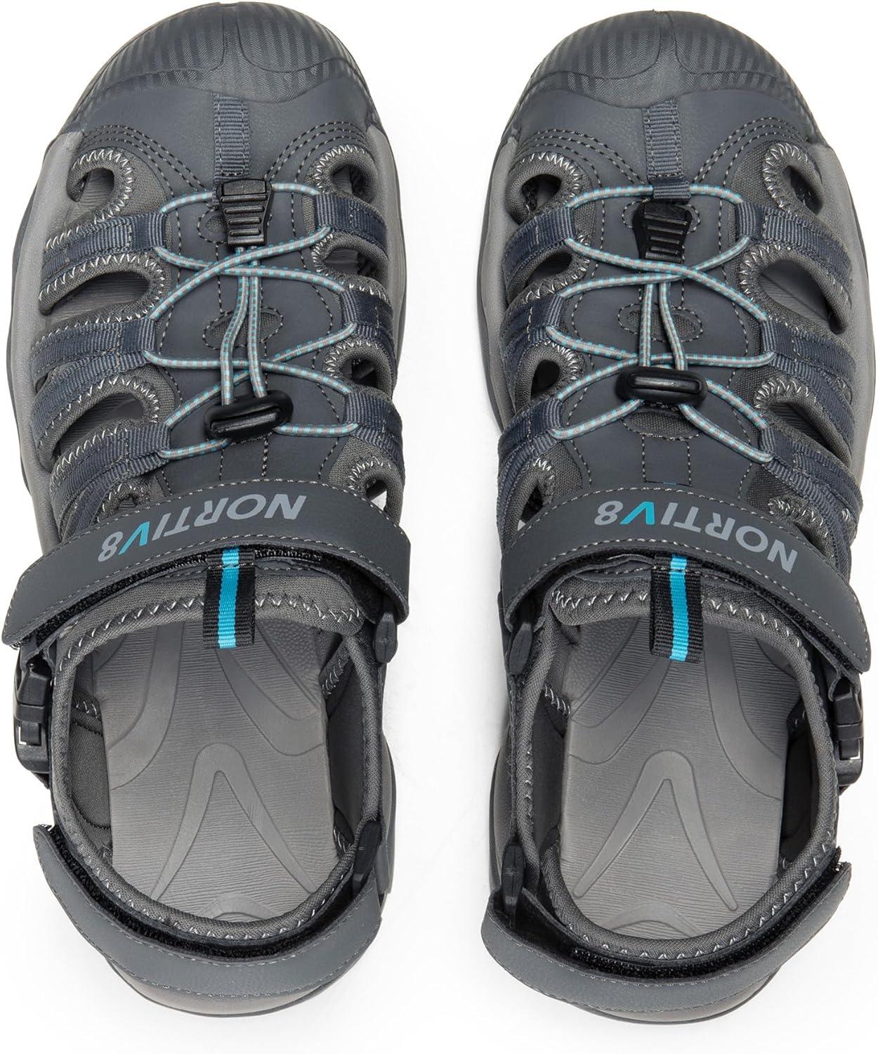 NORTIV 8 Men’s Sandals, Closed Toe Athletic Sport Sandals, Mens Summer Shoes, Lightweight Trail Walking Sandals for Men(Grey/Blue)