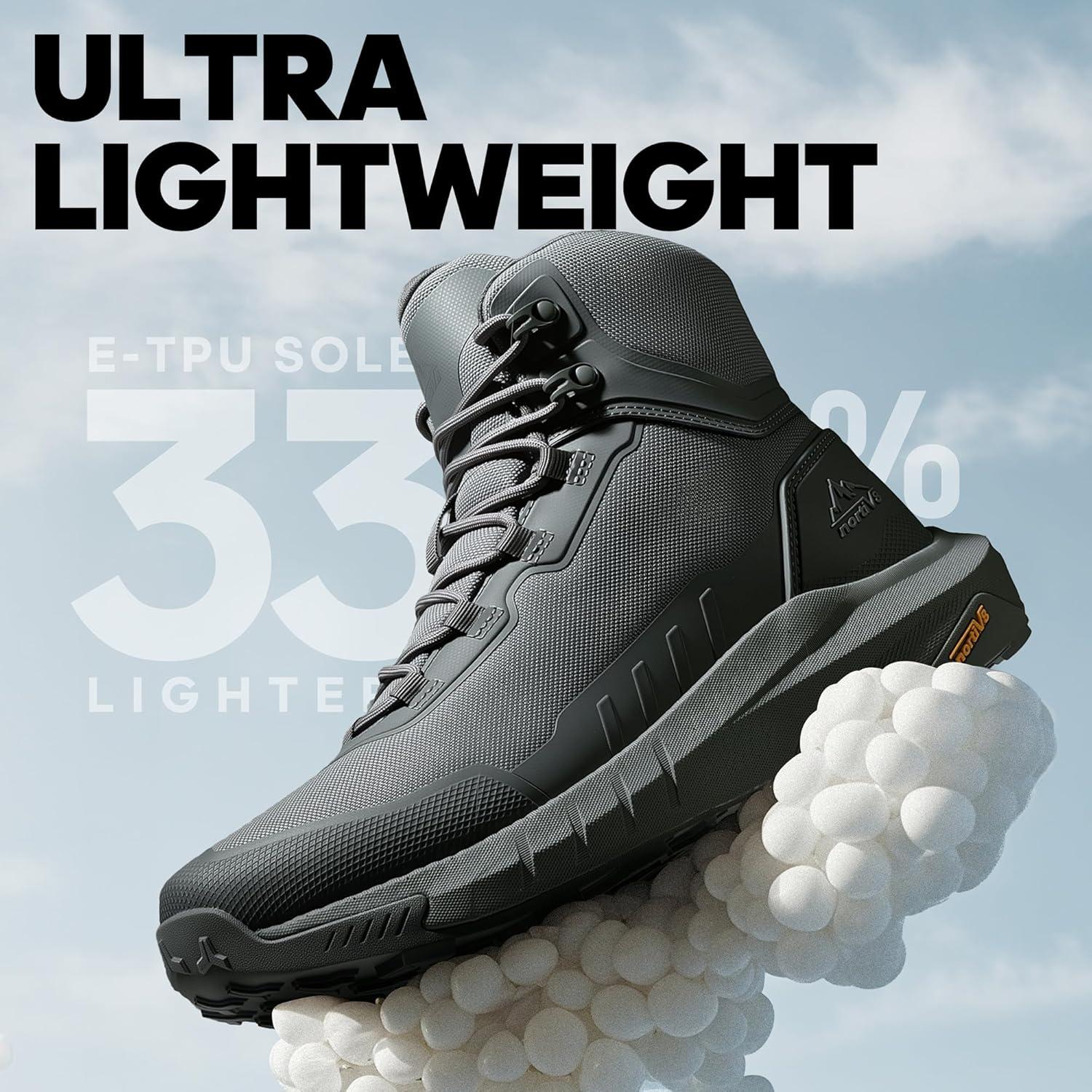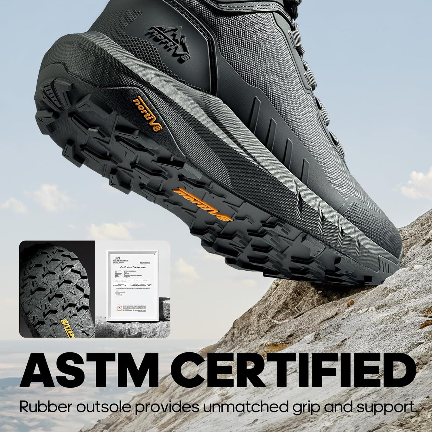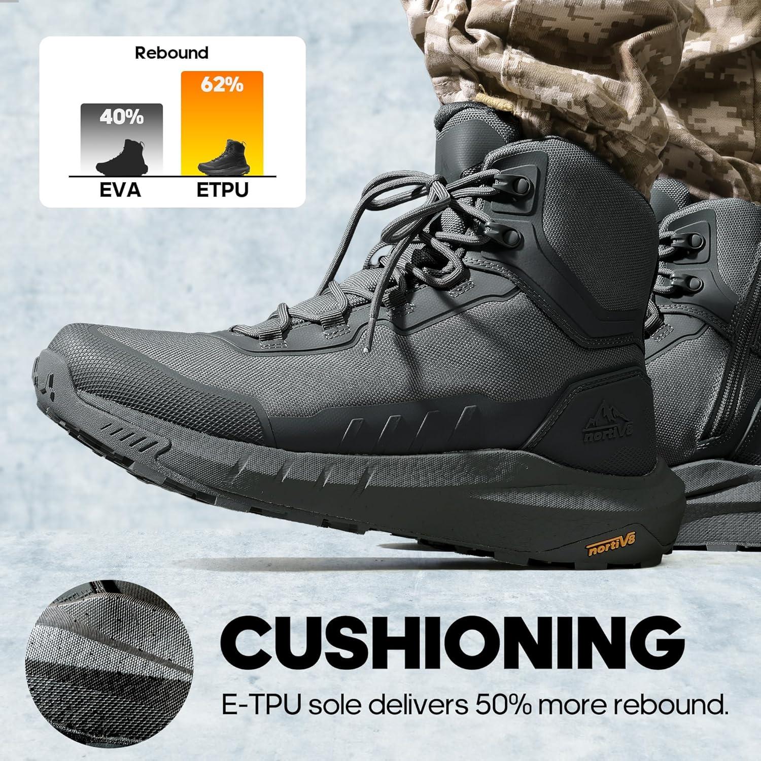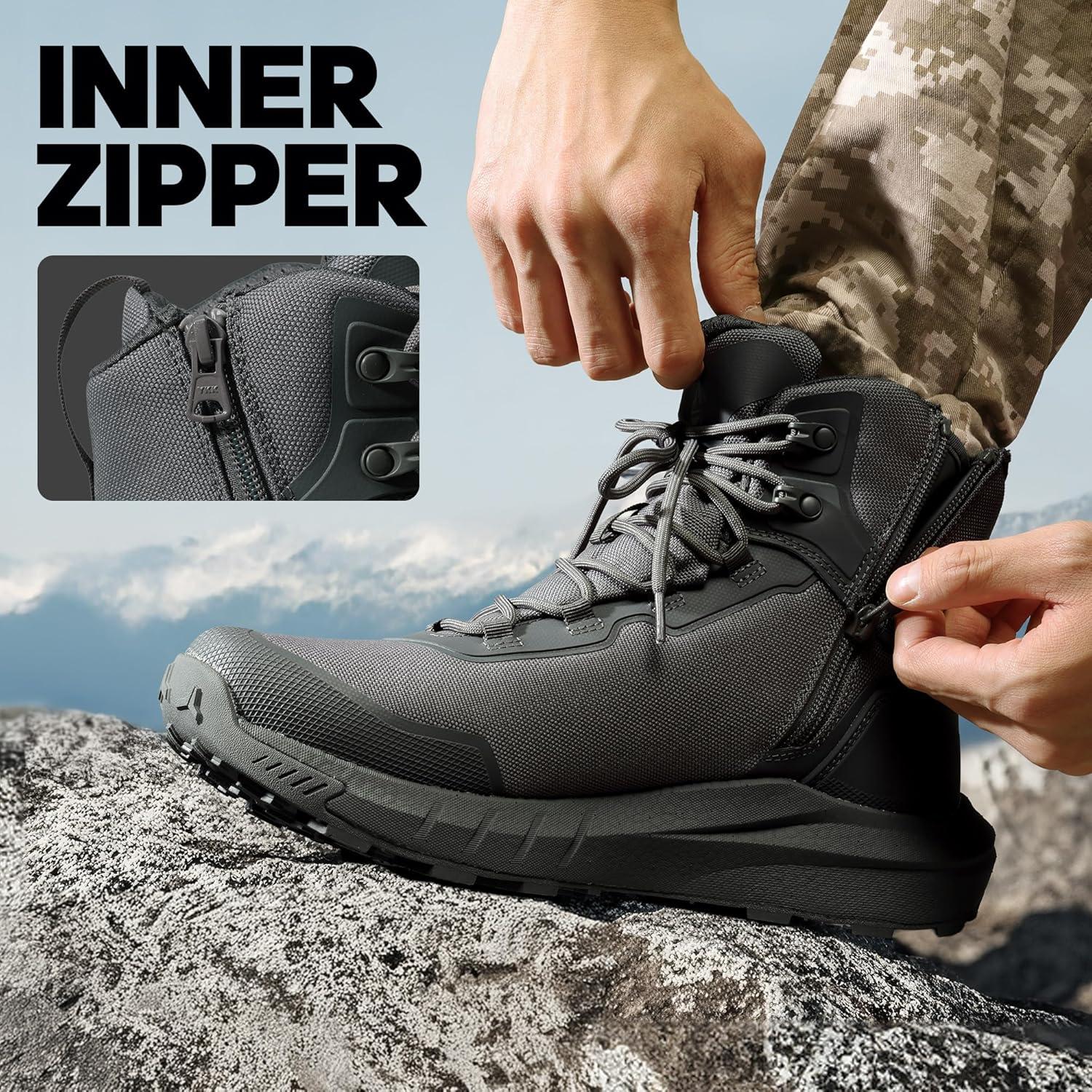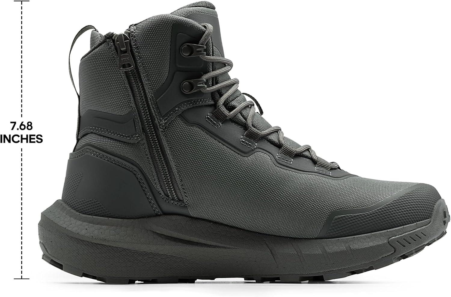 NORTIV 8 Men’s Tactical Hiking Boot Lightweight Cushion Sole Boots for Work All Day Side Zipper Motorcycle Combat Military Boot Arch Support 8 Inches Terrascope(Grey)