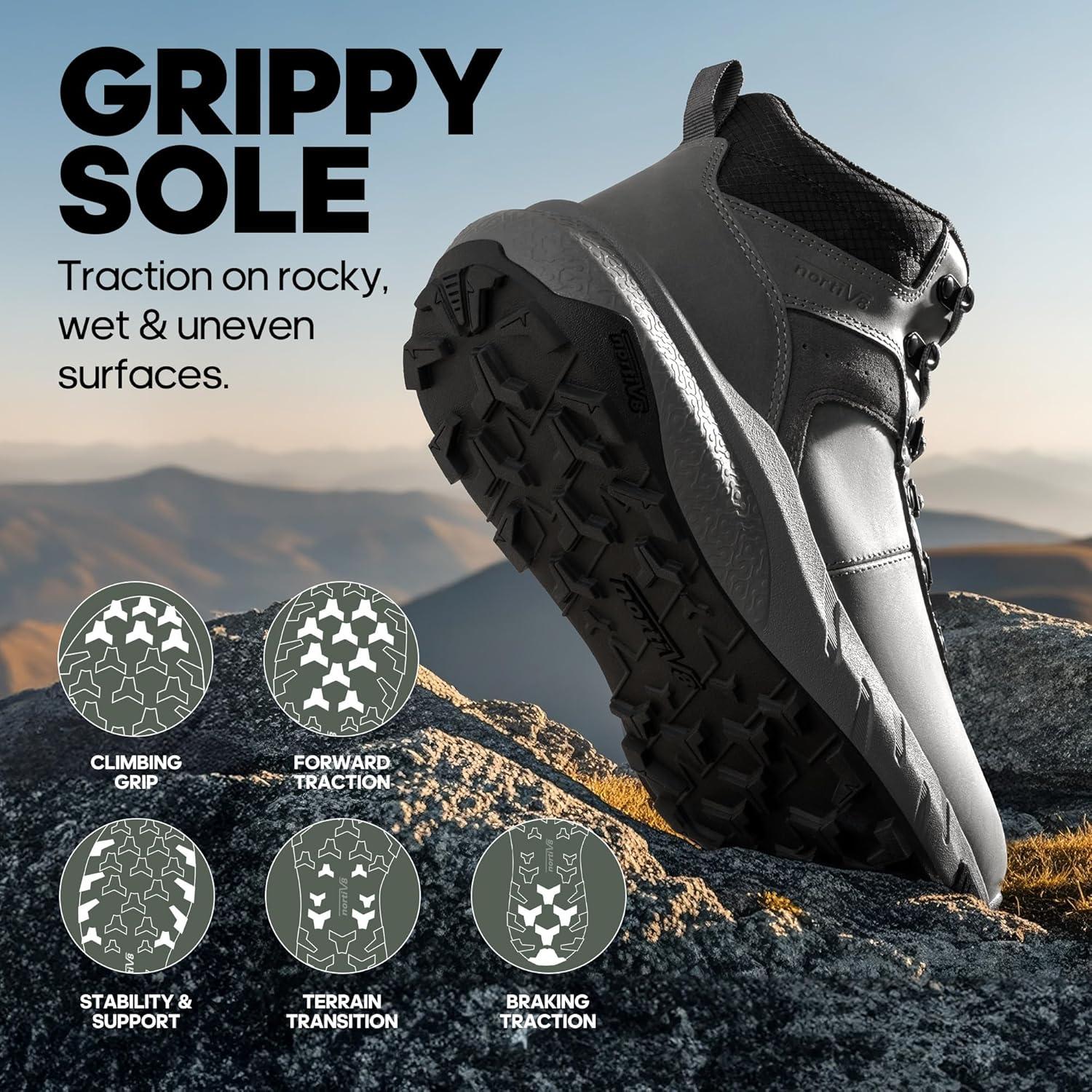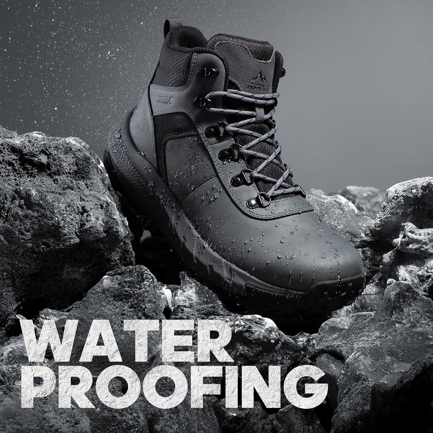 NORTIV 8 Men’s Waterproof Hiking Boots Lightweight Outdoor Mid Trekking Leather Shoes DriftShield(Grey)