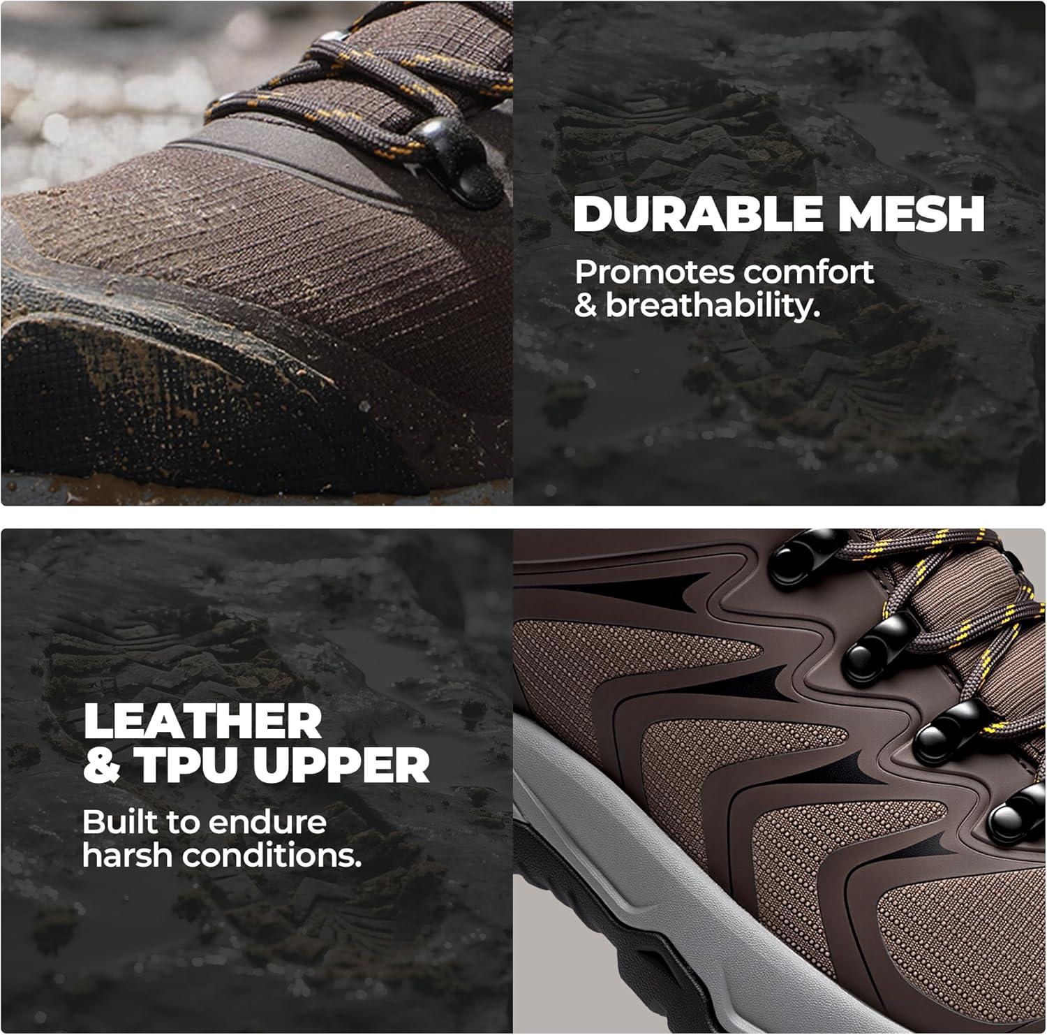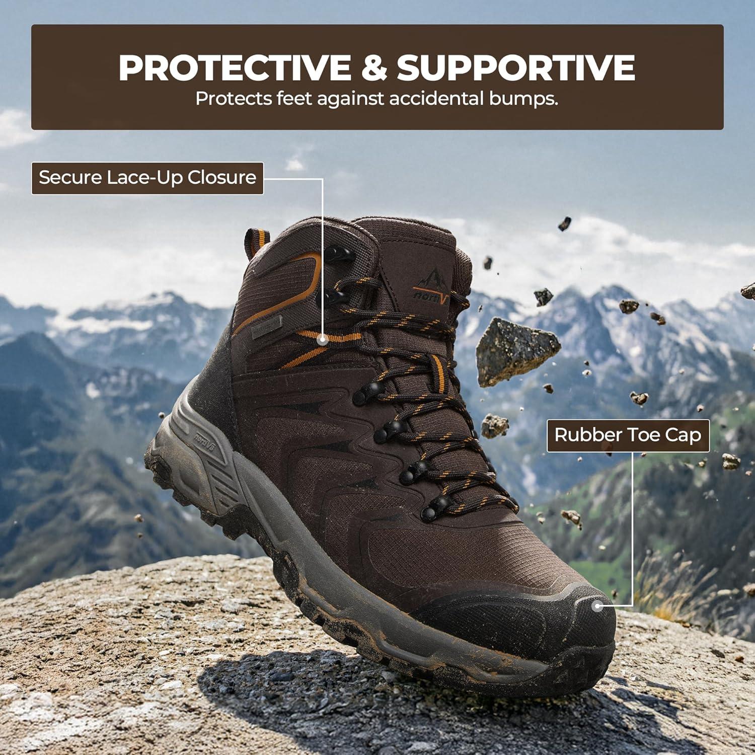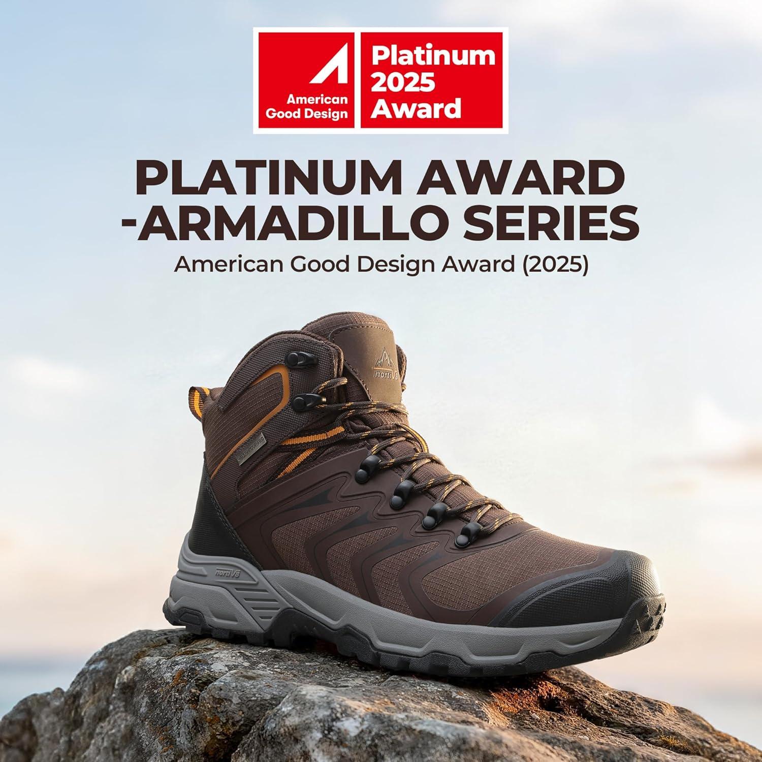NORTIV 8 Men’s Waterproof PRO Hiking Boots Outdoor Lightweight Non-Slip Arch Support Trekking Camping Ankle Boots Armadillo Update(Brown)
