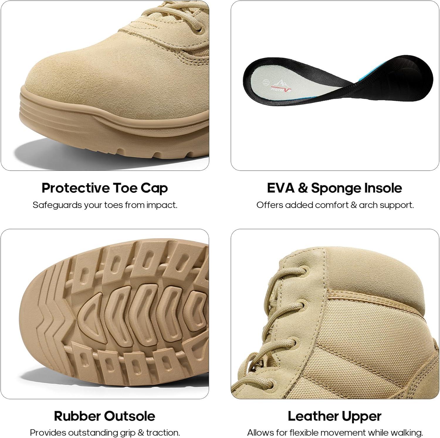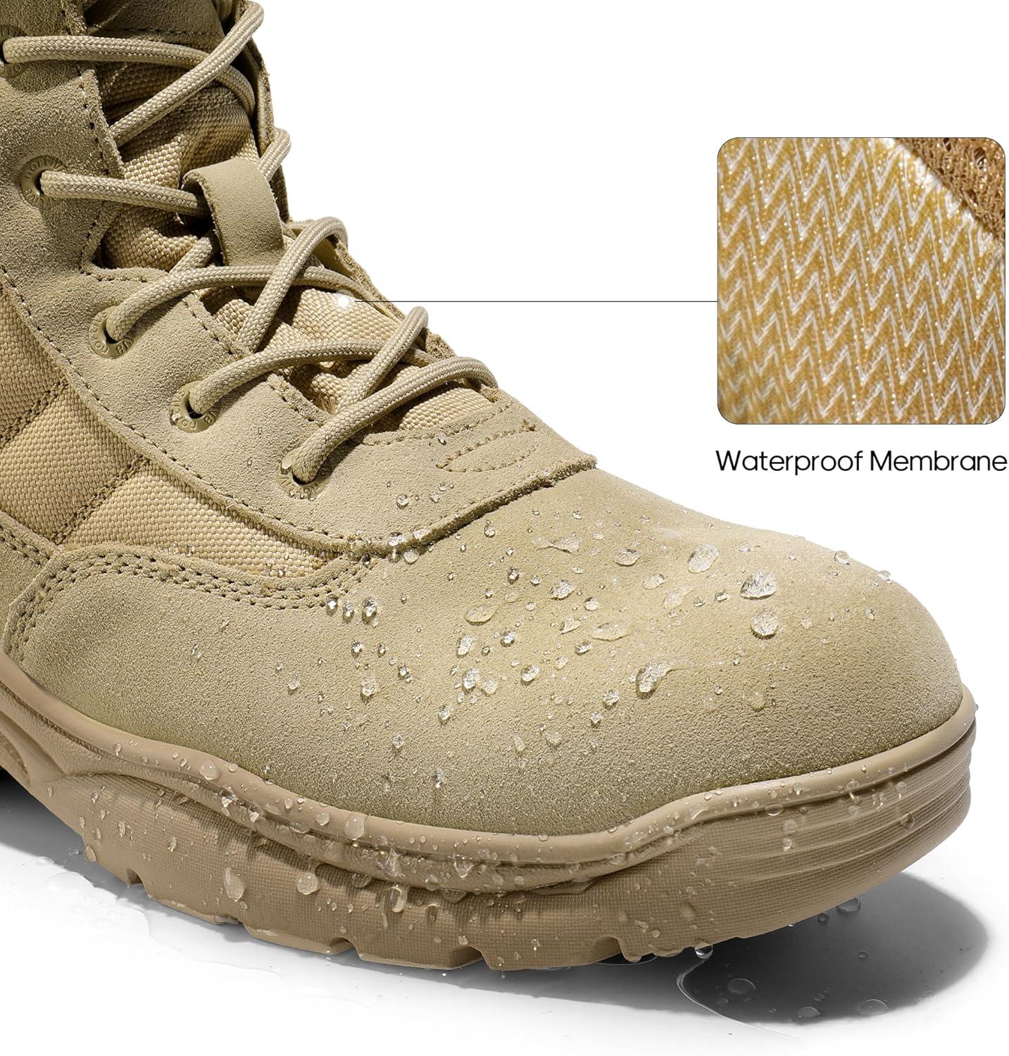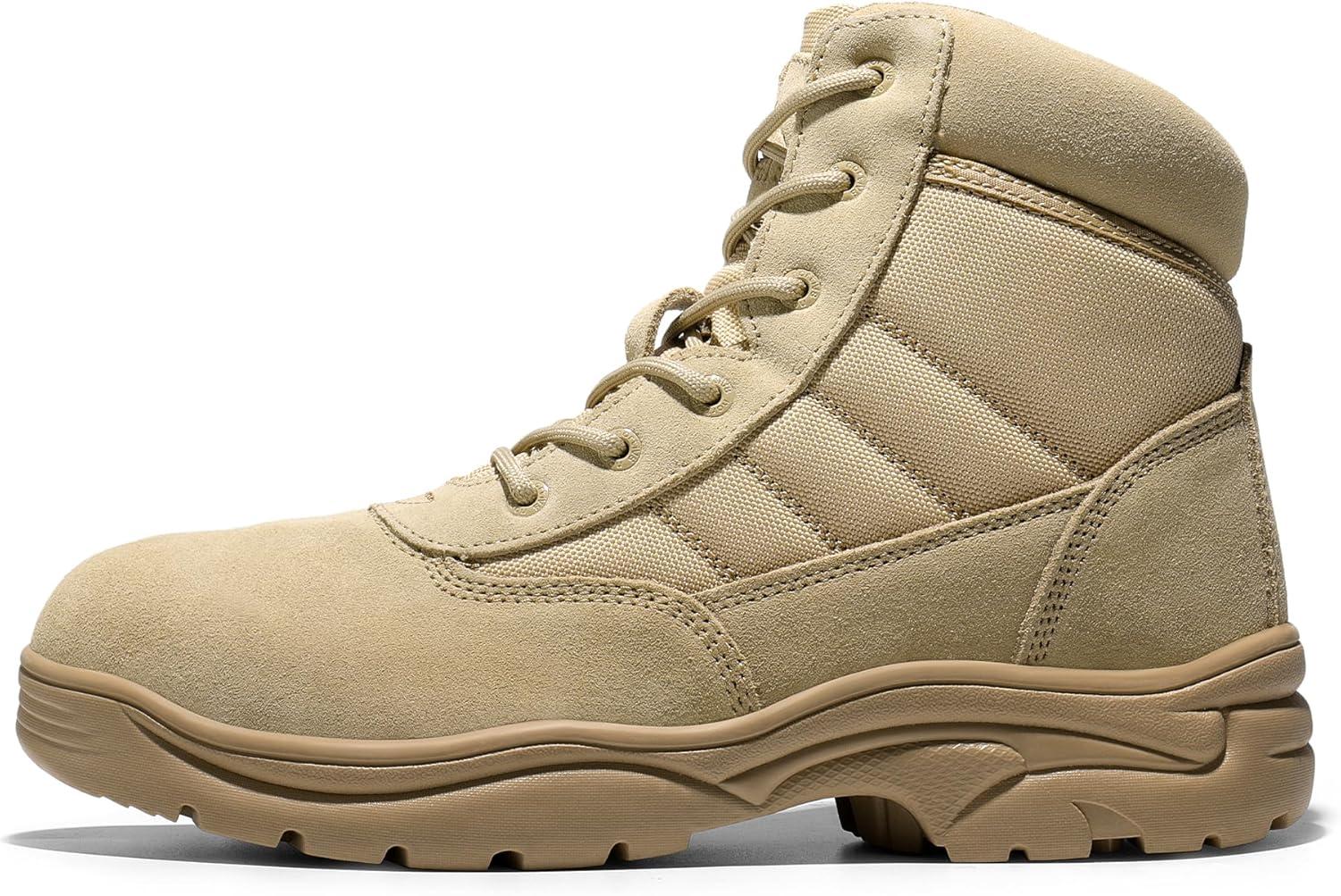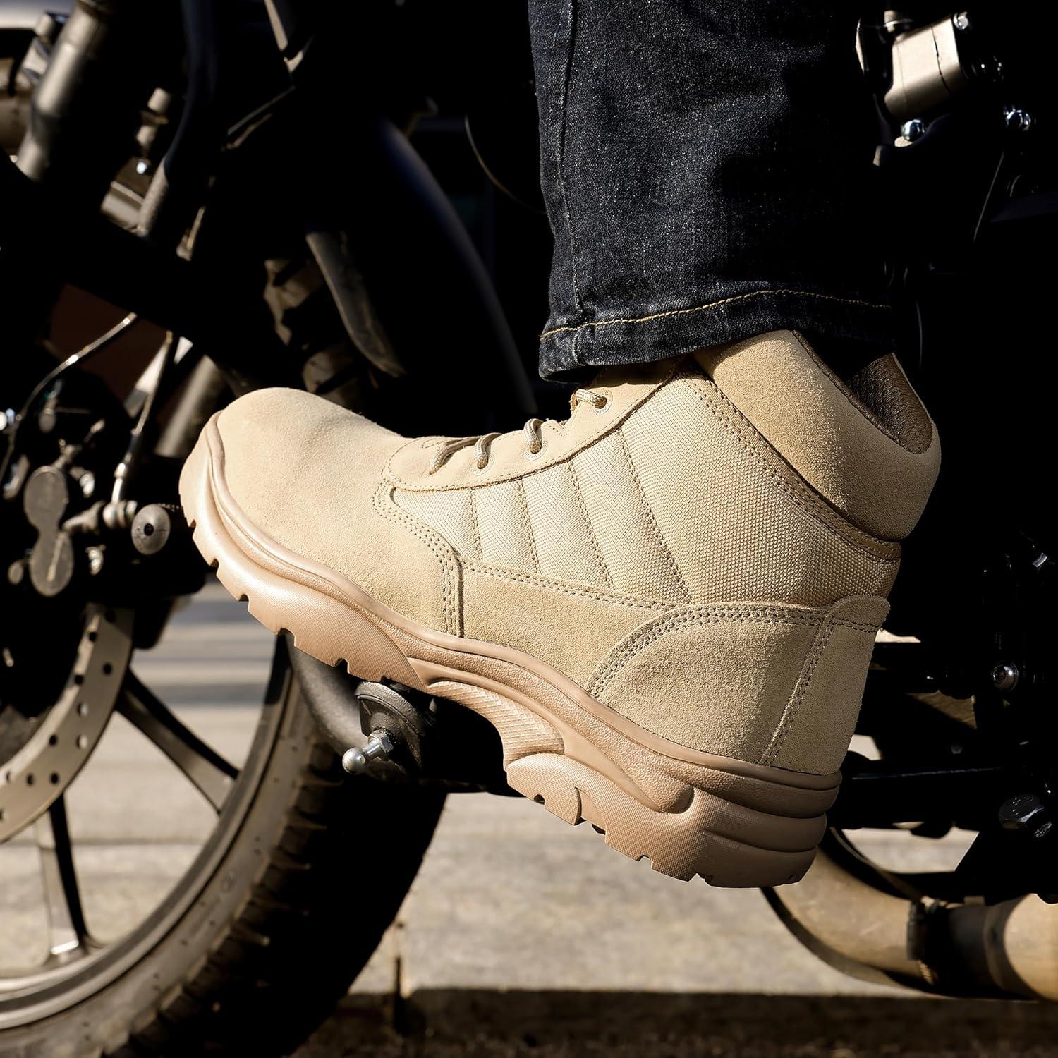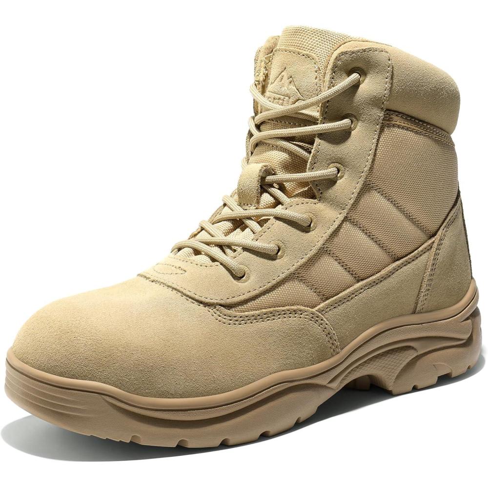 NORTIV 8 Men’s Waterproof Tactical Work Boots Leather Outdoor Hiking Military 6 Inches Motorcycle Combat Boots(Sand)