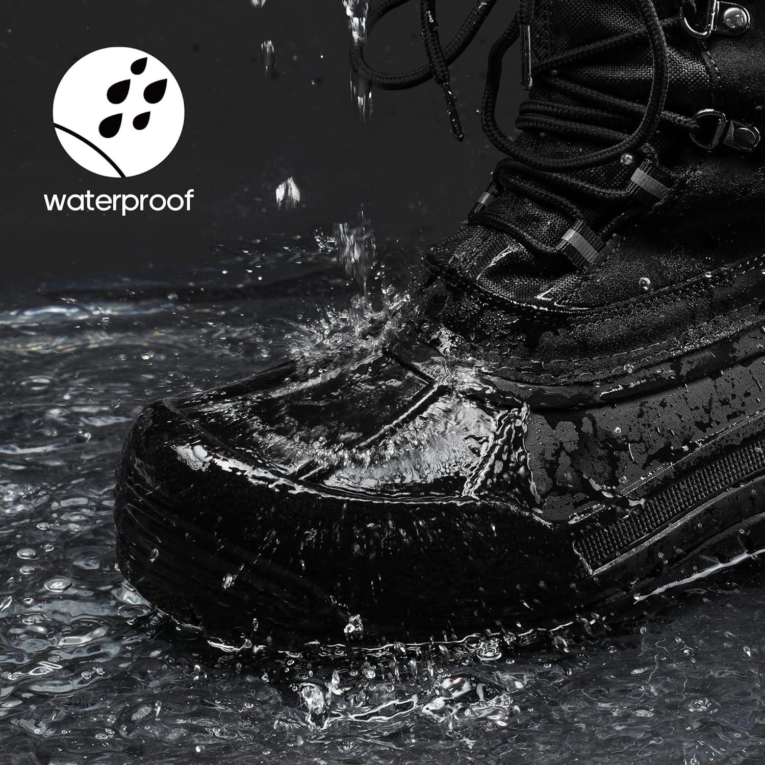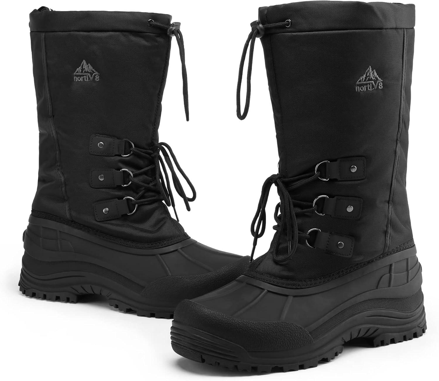 NORTIV 8 Men’s Waterproof Winter Snow Boots Insulated Fur Liner Lightweight Outdoor Tall Boots(Black-2m)