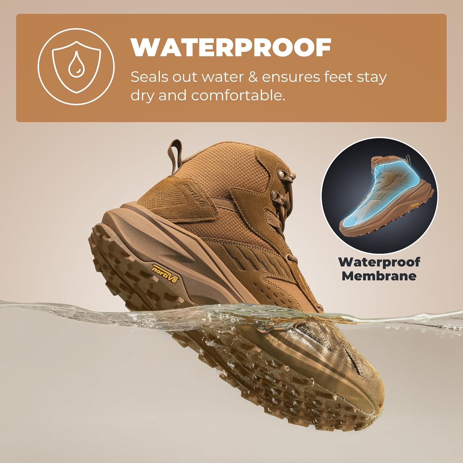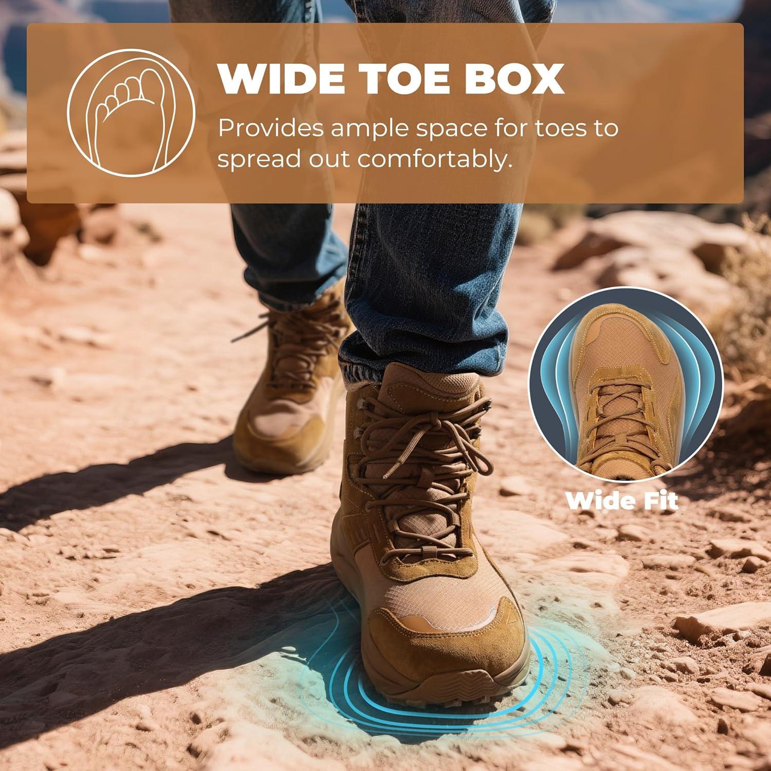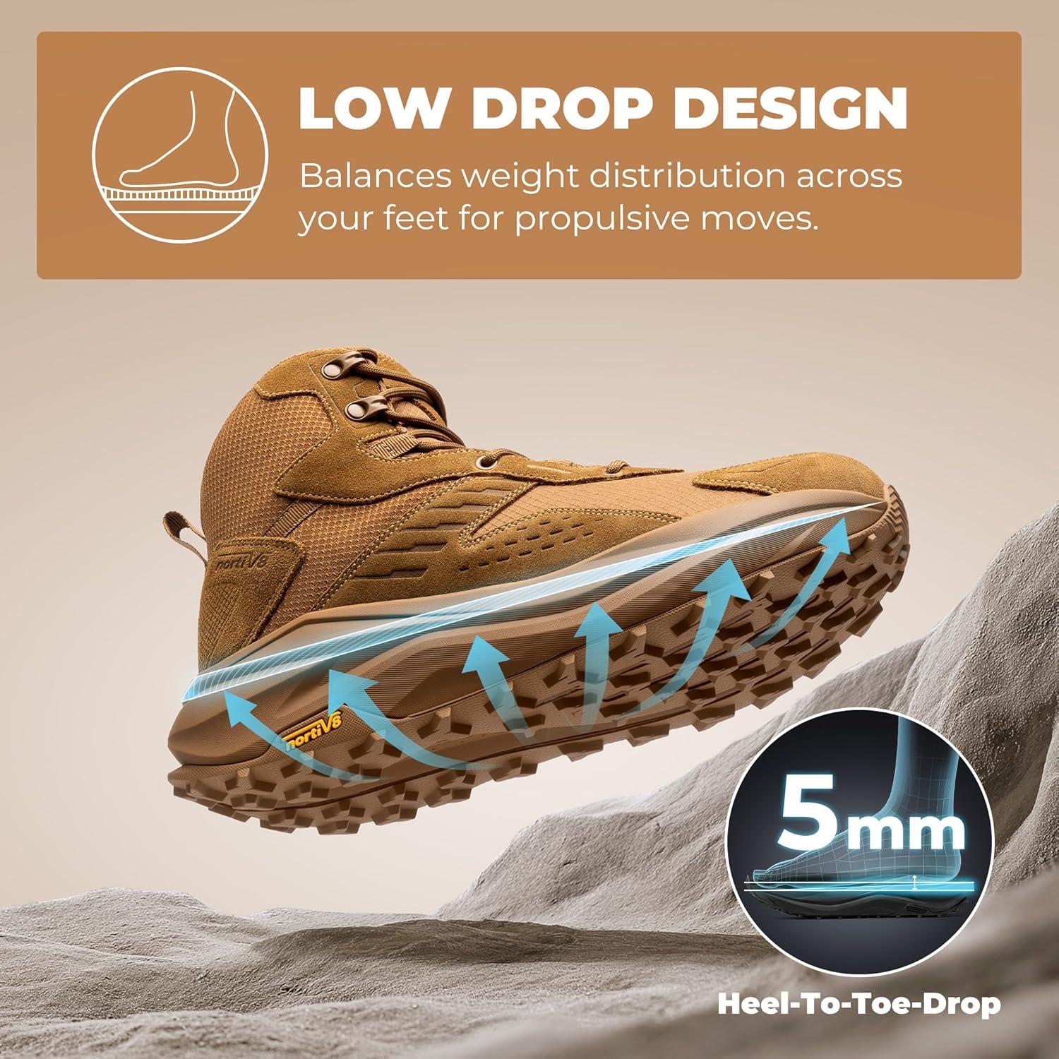 NORTIV 8 Men’s Wide Toe Box Hiking Boots Low Drop Waterproof Outdoor Trekking Camping Shoes Katahdin(Coyote)