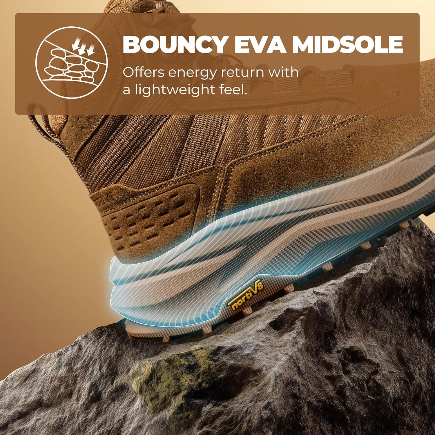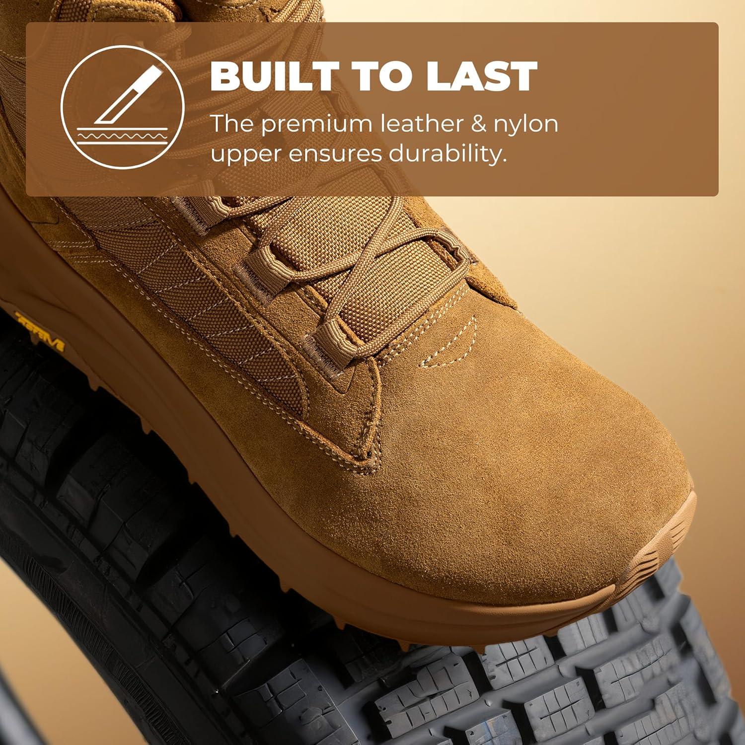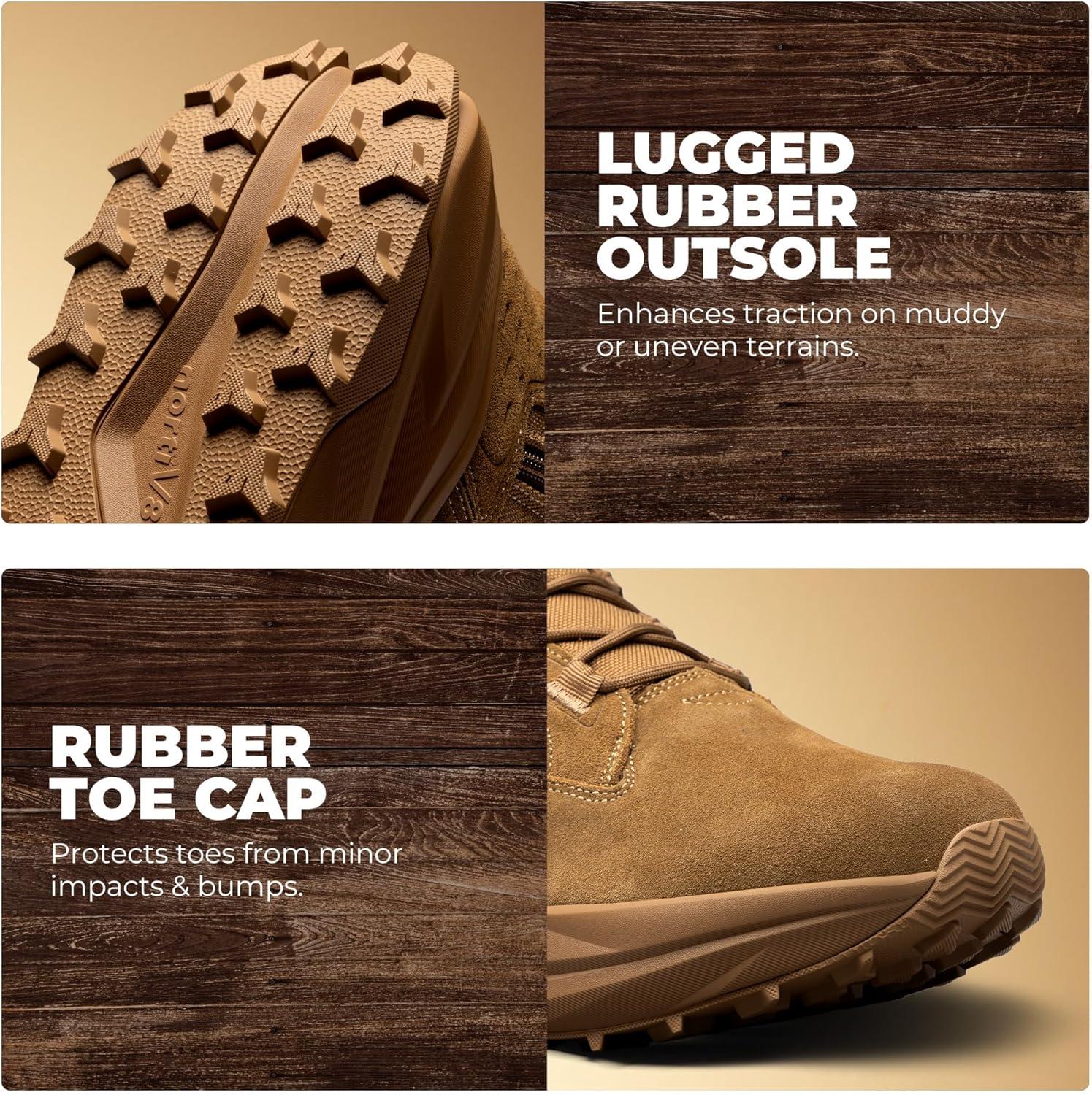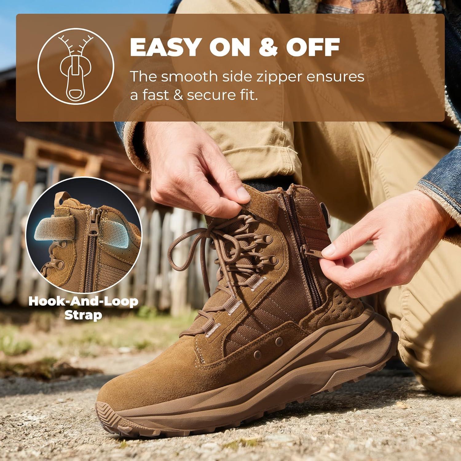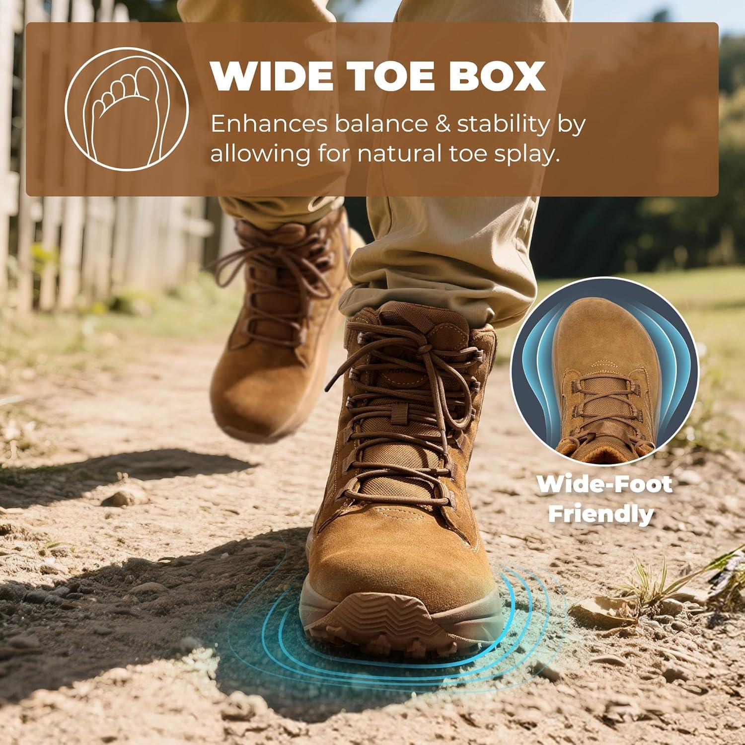 NORTIV 8 Men’s Wide Toe Box Work Military Tactical Boots Barefoot Hiking Low Drop Leather Side Zipper Motorcycle Combat Boots Pikes(Coyote)