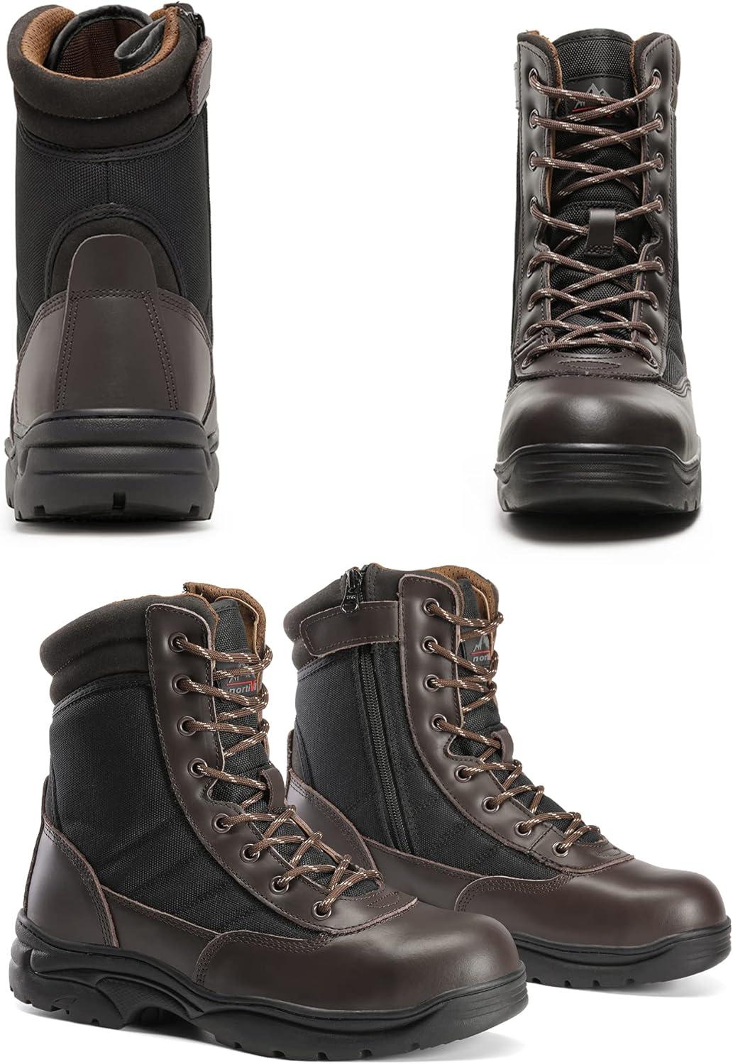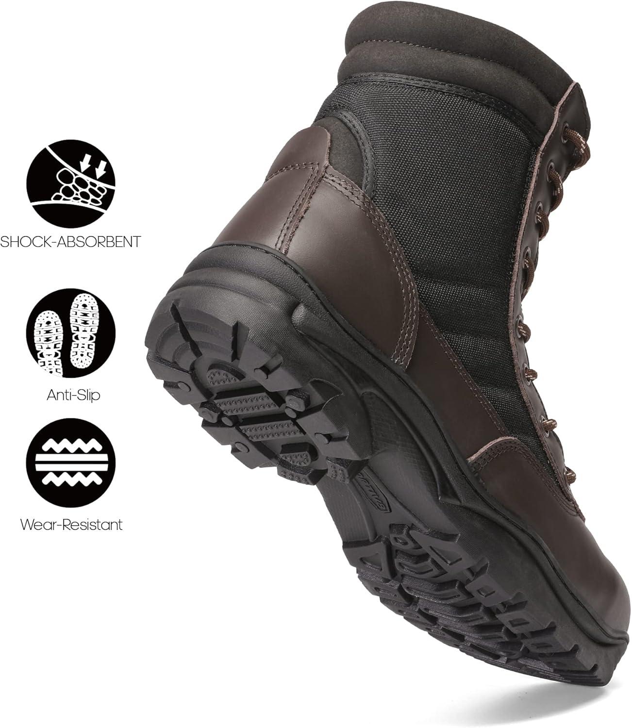 NORTIV 8 Steel Toe Boots for Men Safety Industrial & Construction Military Work Boots Slip Resistant ASTM F2413-18, TROOPER-STL(Dark Brown)