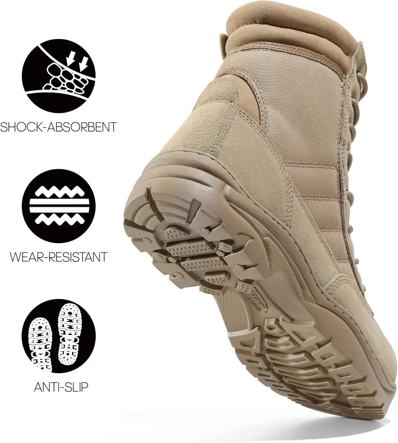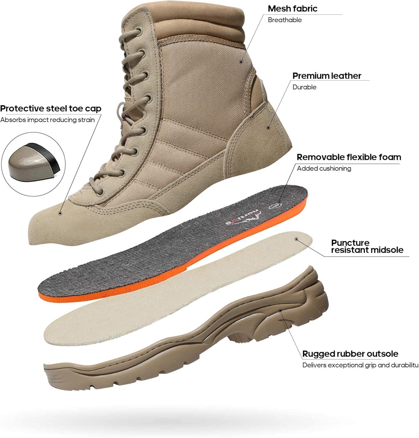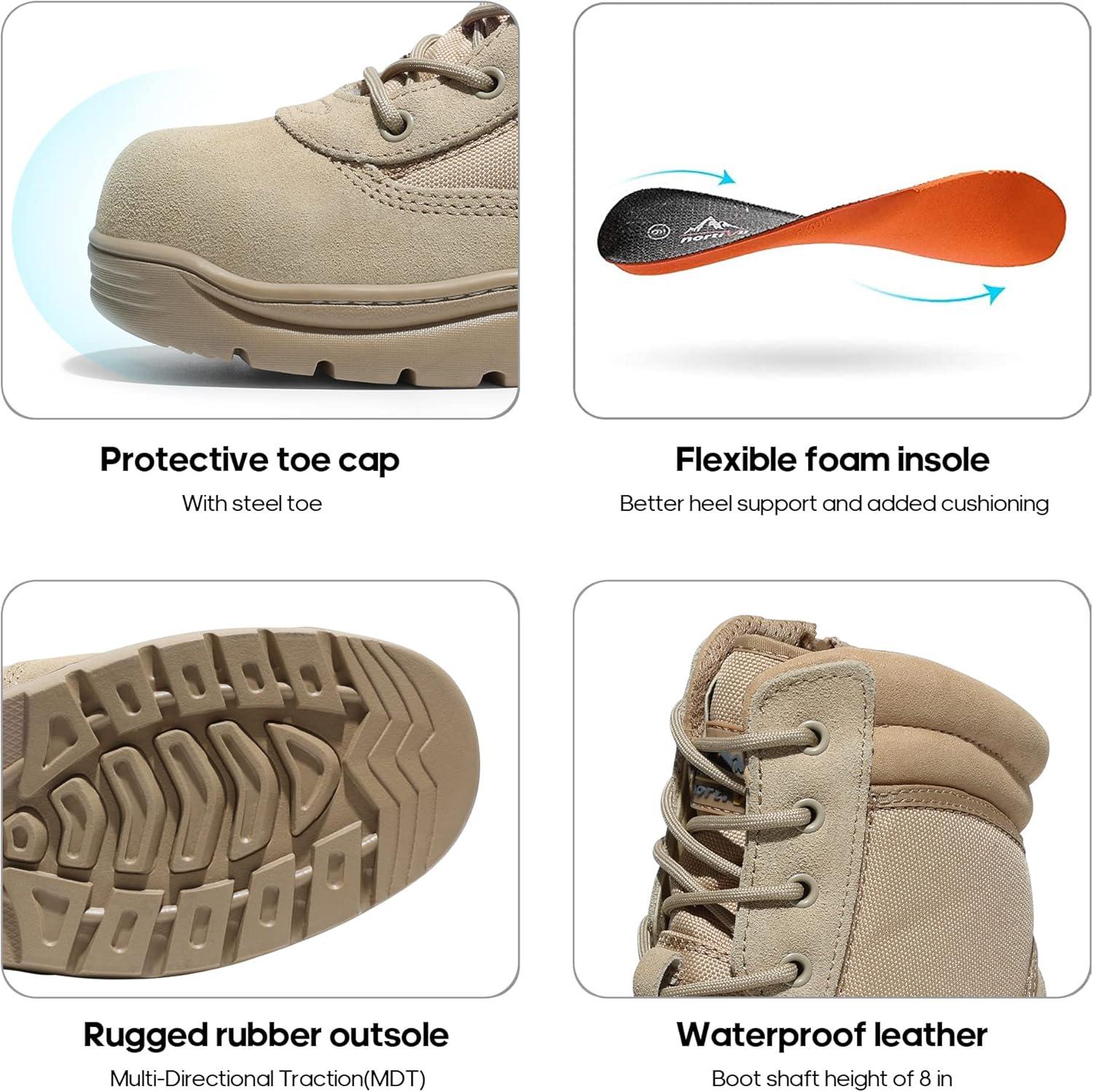 NORTIV 8 Steel Toe Boots for Men Safety Industrial & Construction Military Work Boots Slip Resistant ASTM F2413-18, TROOPER-STL(Sand)
