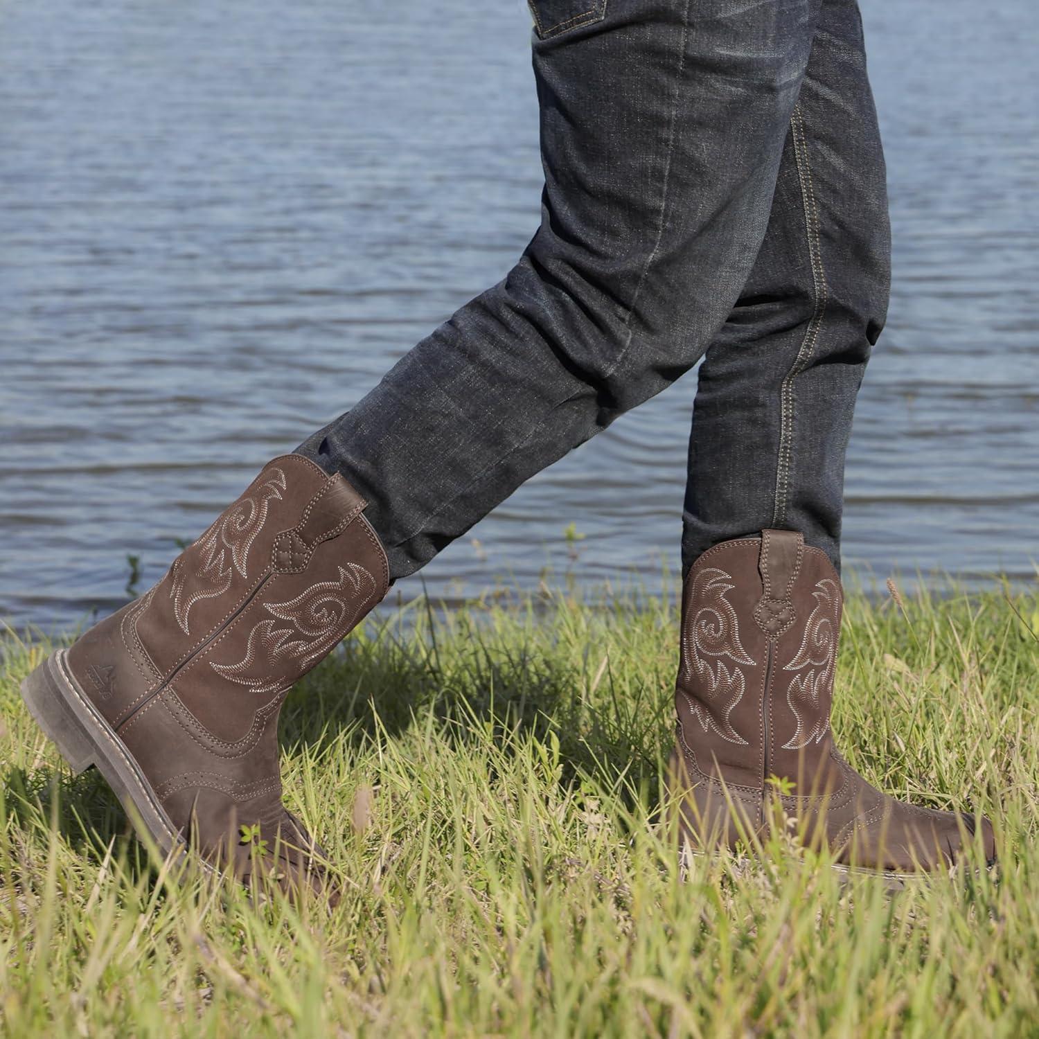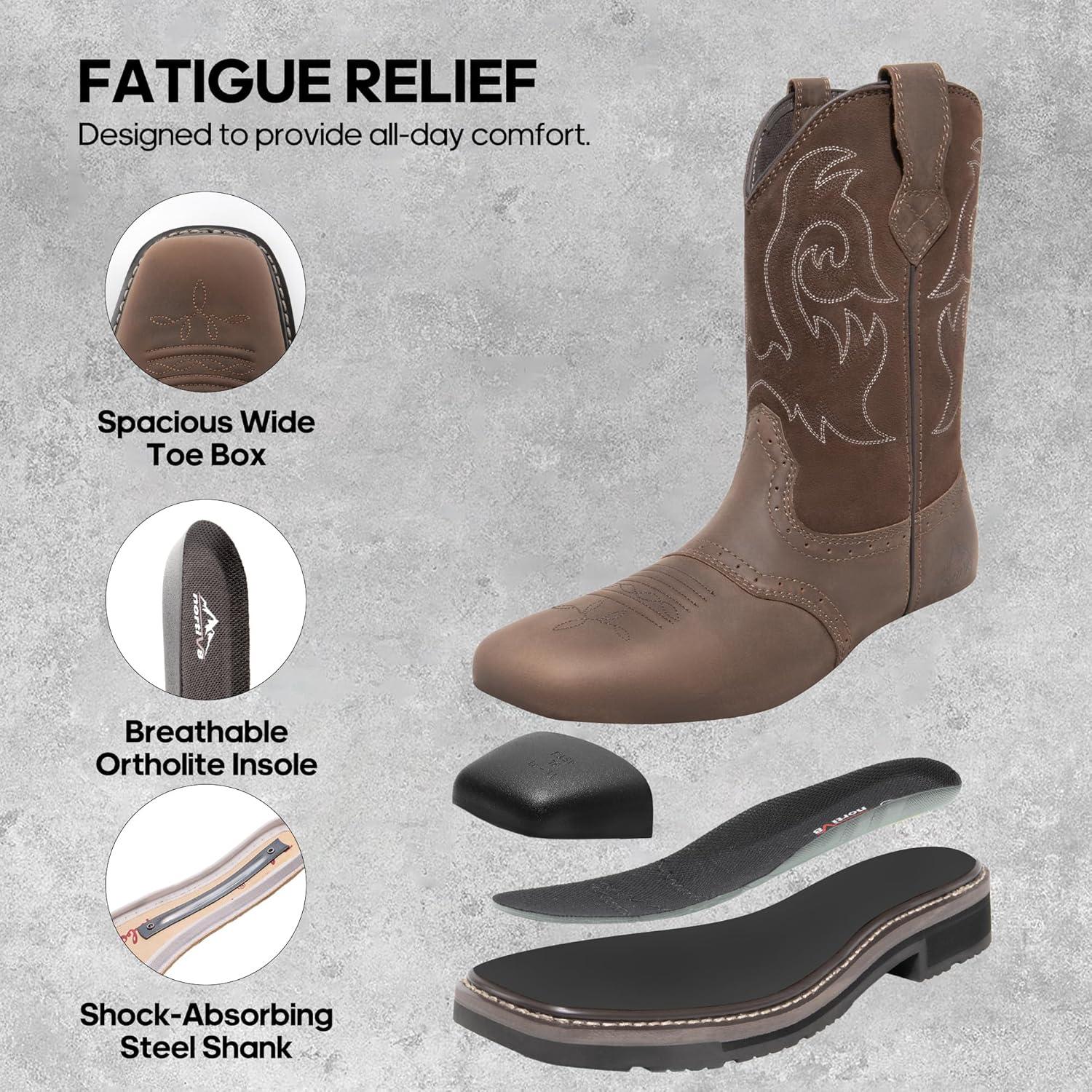 NORTIV 8 Steel Toe Cowboy Boots for Men Western Square Toe Leather Work Boots with Hazard Protection,for Construction Farming Bronco Trailblazer(Dark Brown)