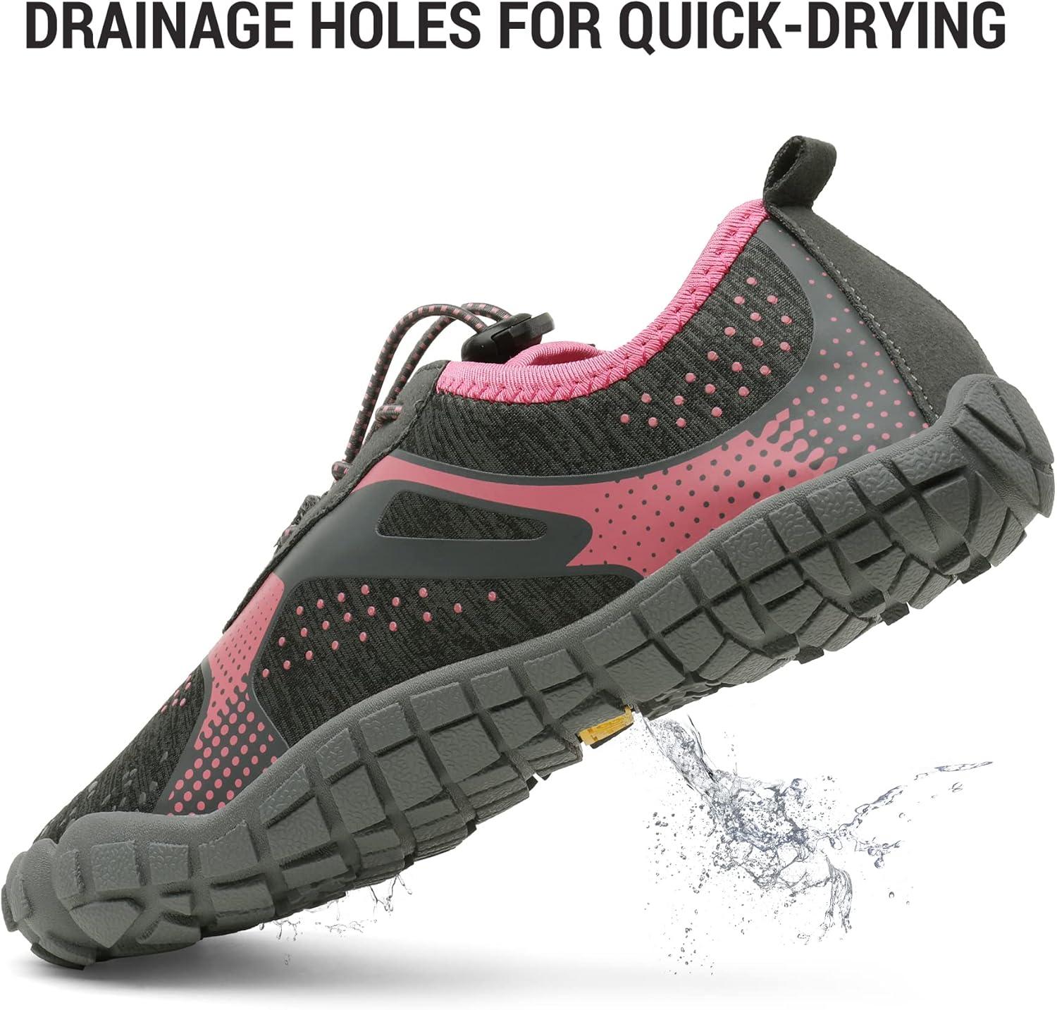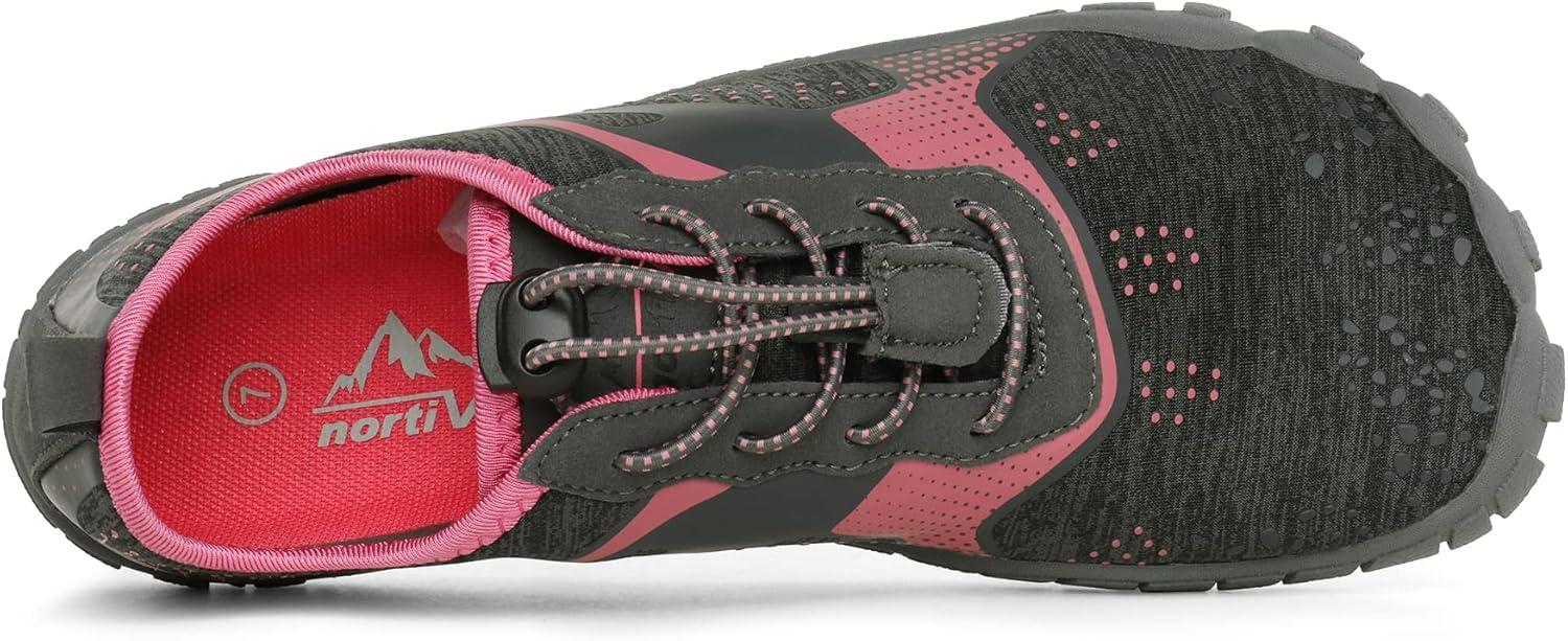 Stride along in comfort with the NORTIV 8 water shoes. It features stretchable, breathable and durable polyester and spandex upper allow your feet to breathe, the rubber outsole provides exceptional traction in wet and slippery conditions, rapid dry sock liner provides the optimum cushioning performance that gives you a cooler, drier fit, and holes on the sole provide superior breathability and quick drying.
