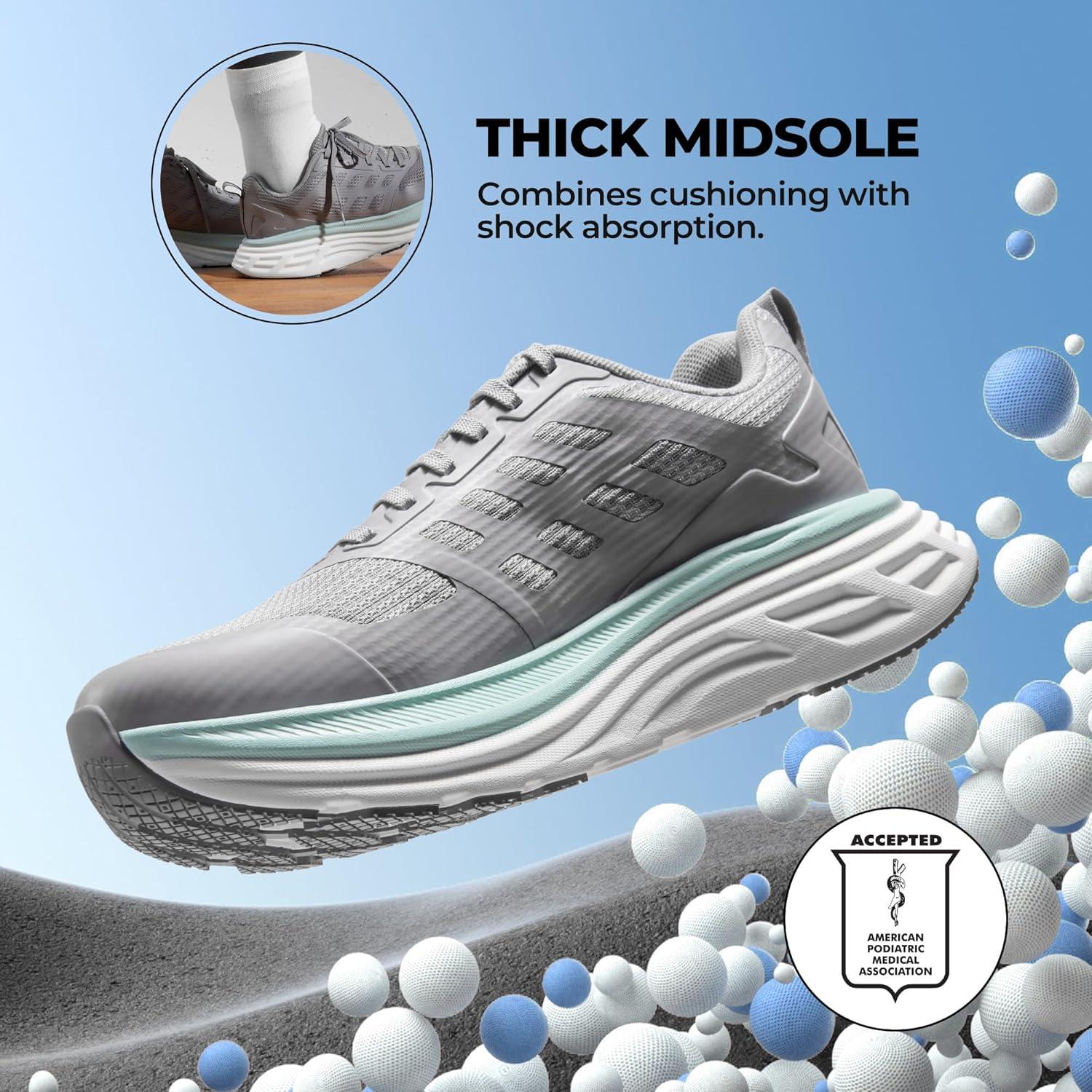 NORTIV 8 Women’s Walking Shoes Cushion Running Tennis Shoes ActiveFloat Non-Slip Comfortable Breathable Workout Gym Sports Athletic Fashion Sneakers(Grey)