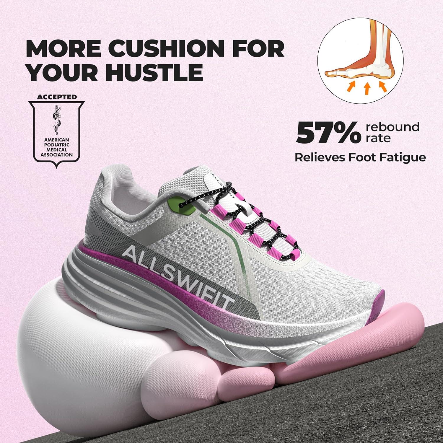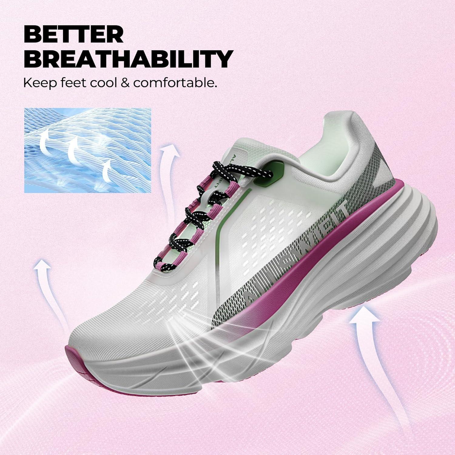 Women’s Cushion Lightweight Walking Running Shoes Tennis Non-Slip Comfortable Jogging Workout Gym Athletic Breathable ActiveAiry Fashion Sneakers(White/Pink)