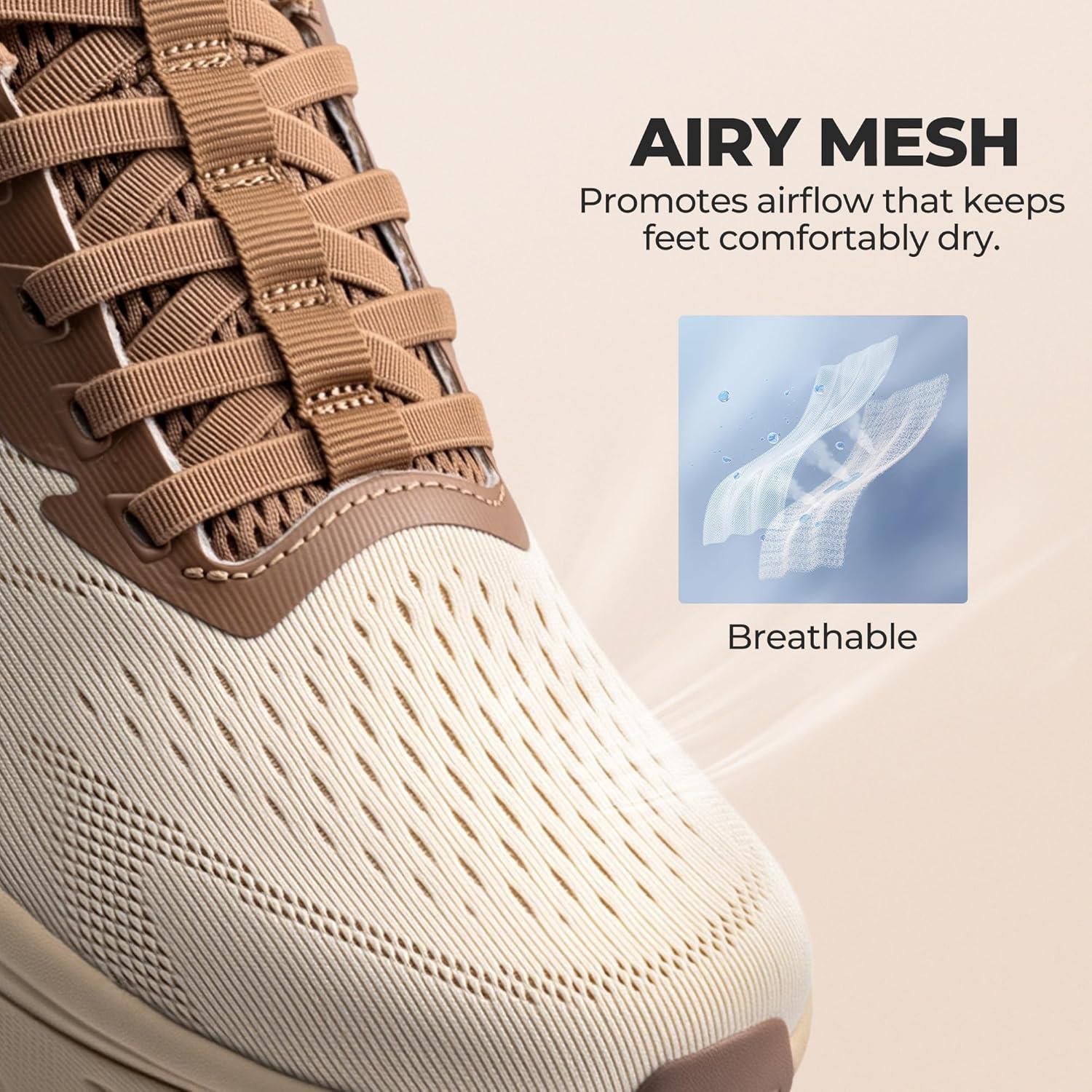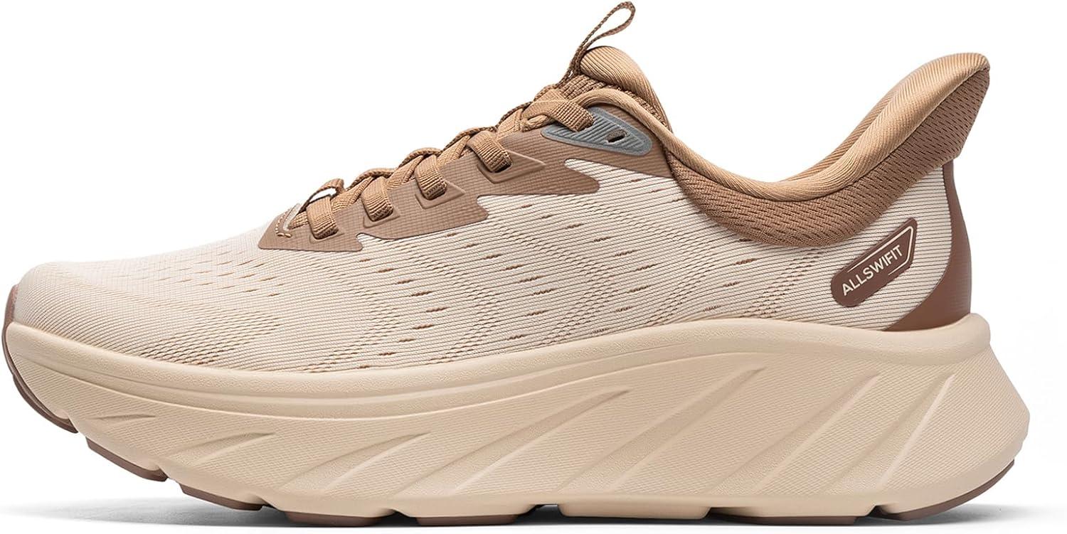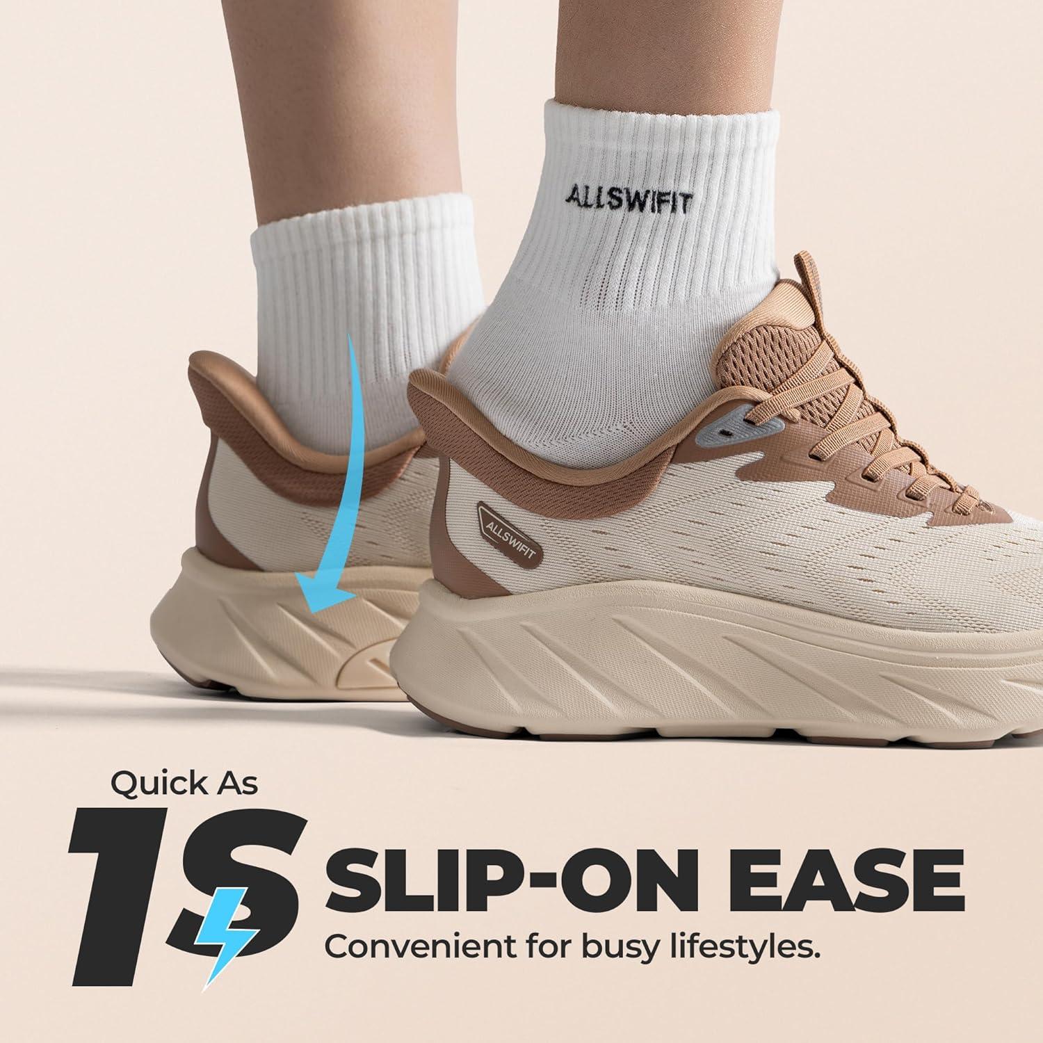 Women’s Slip On Stability Walking Running Shoes Hands Free Tennis Non-Slip Comfortable Workout Gym Breathable Lightweight StediBase Fashion Sneakers(Beige/Khaki)