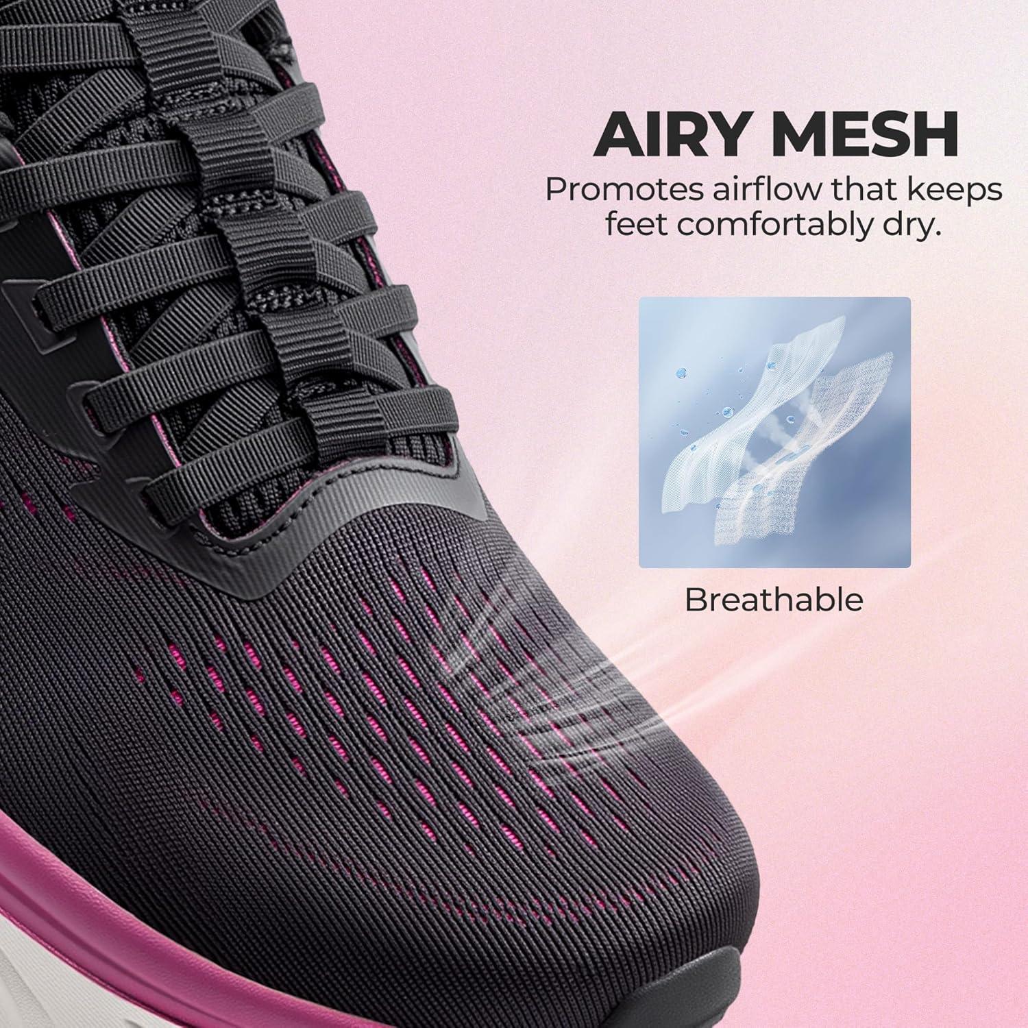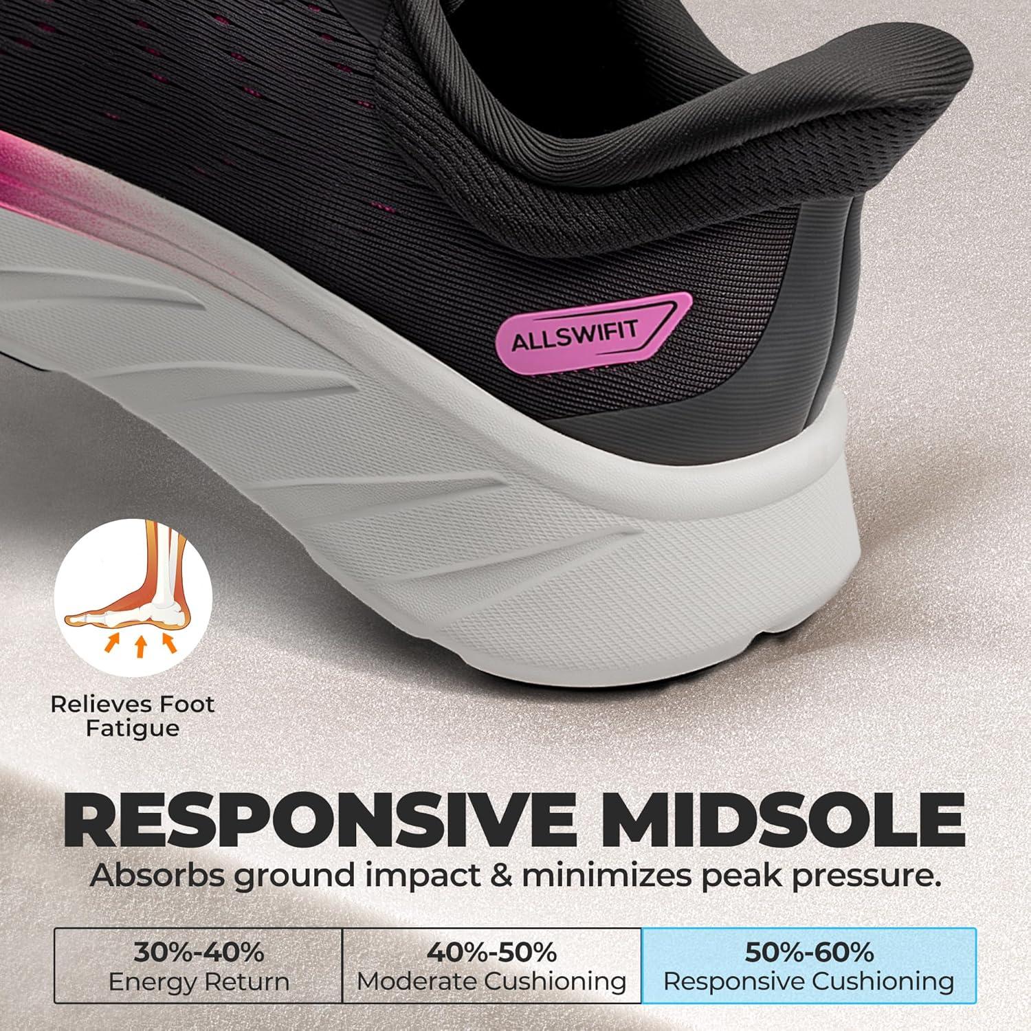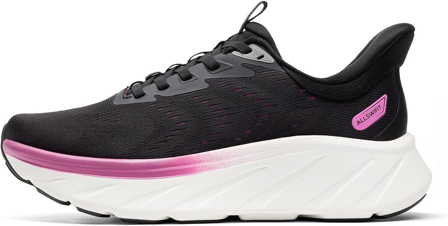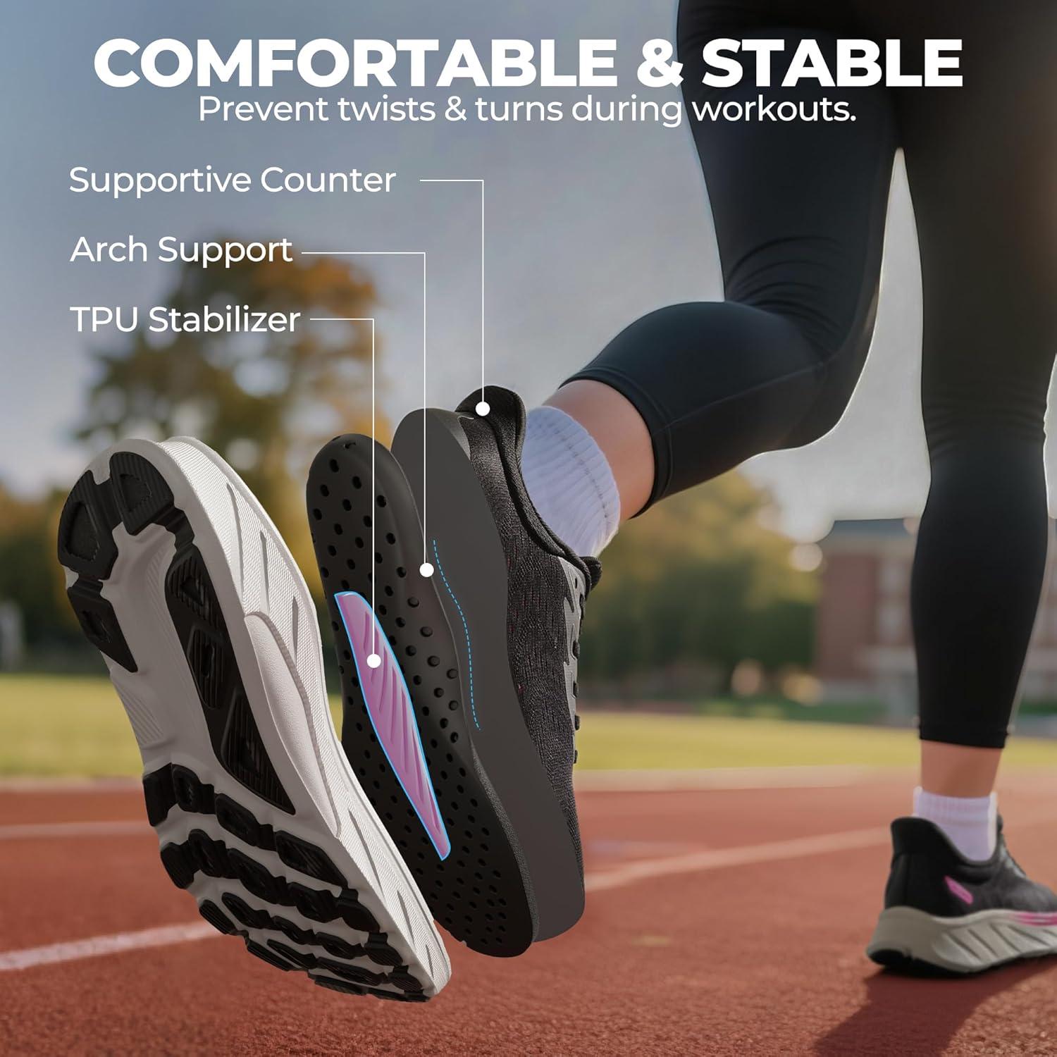 Women’s Slip On Stability Walking Running Shoes Hands Free Tennis Non-Slip Comfortable Workout Gym Breathable Lightweight StediBase Fashion Sneakers(Black)