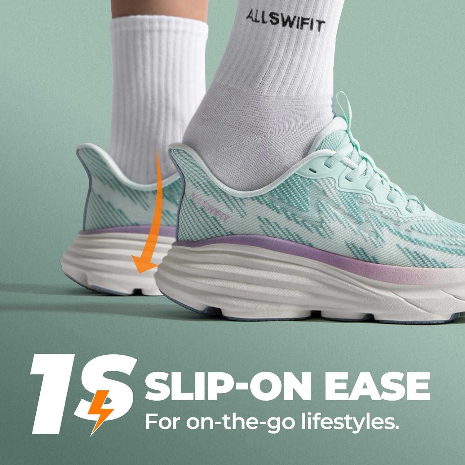 Women’s Slip On Walking Shoes Hands-Free Cushion Running Tennis SwiftPlush Non-Slip Comfortable Workout Gym Athletic Fashion Sneakers(Light Green)