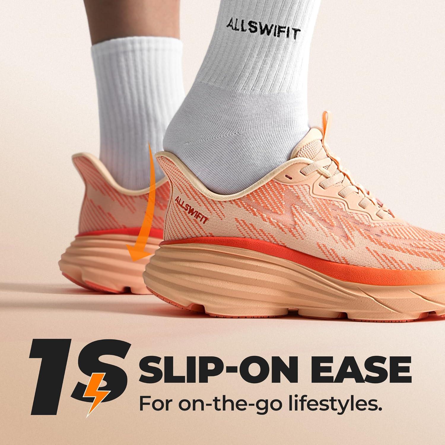 Women’s Slip On Walking Shoes Hands-Free Cushion Running Tennis SwiftPlush Non-Slip Comfortable Workout Gym Athletic Fashion Sneakers(Orange)